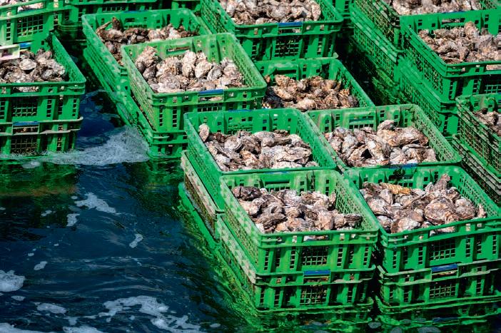 Opposite from top: Aaron, Joel and Luke harvesting oysters, FlipFarm; the FlipFarm This page from top: Lisaqua team: Charlotte Schoelink, Caroline Madoc and Gabriel Boneu; Anthony Mangnall MP