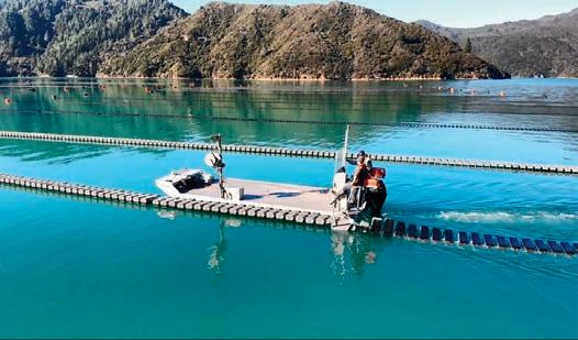 Left: Fish farm Opposite: Mairi Gougeon meets Brian Perkins, CEO of the Global Seafood Alliance (left) with Donna Fordyce of Seafood Scotland (right) at Seafood Expo Global, Barcelona