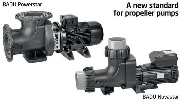 With the BADU Powerstar and BADU Novastar, SPECK is offering dryinstalled, robust propeller pumps in a fully plastic design. The singlestage, non-self-priming elbow pumps with axial impellers can be used in freshwater and saltwater thanks to their fully plastic design. The material makes them lighter, less susceptible to corrosion and more affordable. The pump shaft does not come into contact with the water in the circuit. Thanks to electrical separation, the pumps are therefore also safe to operate. Metal components never come into contact with the water. The BADU Powerstar has a maximum capacity of 250 m³/h with a total delivery head of 4 metres. The BADU Novastar is designed for smaller systems, ponds and aquaponics. The directly mounted variable speed motor is exceptionally quiet and efficient, and outputs of up to 100 m³/h at a maximum delivery height of 5 metres can be realised. Find out more at speck-pumps.com/aquaculture