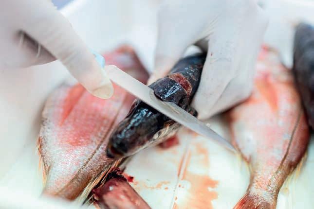 Top: 35 litre trial tanks at CATC’s Facility Above: A 3 er�fied Labs at CATC’s Facility Left: Intramuscular salmon accina�on at CATC’s FacilityCertifications serve as a powerful testament to the safety, quality, and compliance of your product
