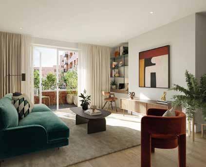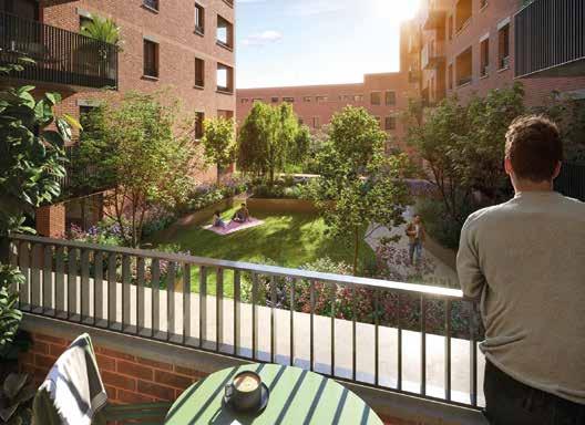The architecture fuses traditional brickwork with sleek, contemporary lines, while interiors features a high spec throughout. Every home includes a private balcony or terrace, with access to two podium gardens, a concierge, a resident lounge and a handy bike wash station. Sustainability is at the heart of the scheme, with two communal air source heat pumps, which significantly reduces energy consumption, 442 cycle spaces, tripleglazed windows and low energy lighting and efficient heating and ventilation systems.