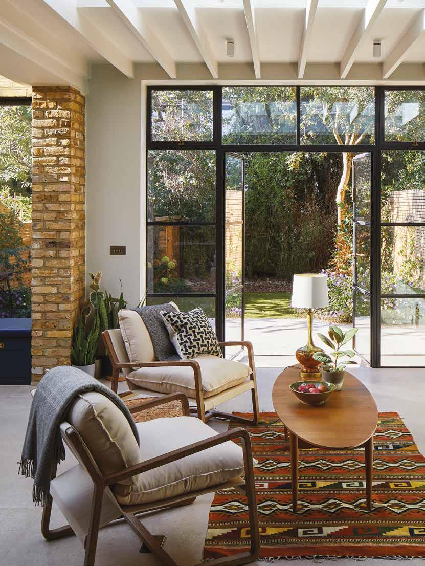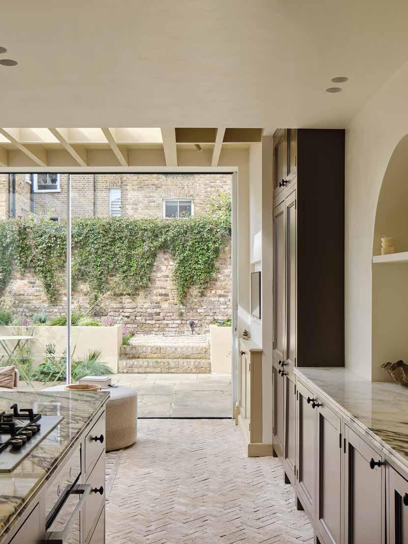 The defining move was structural. By removing the wall between kitchen and living areas, the team formed one unified volume that holds cooking, dining and relaxing within a clear plan. Circulation was re-set to feel intuitive, and sightlines were composed from each approach, ensuring the kitchen reads as ordered from the entrance, the dining table and the seating area. Dual-aspect glazing brings the outlook into the room.