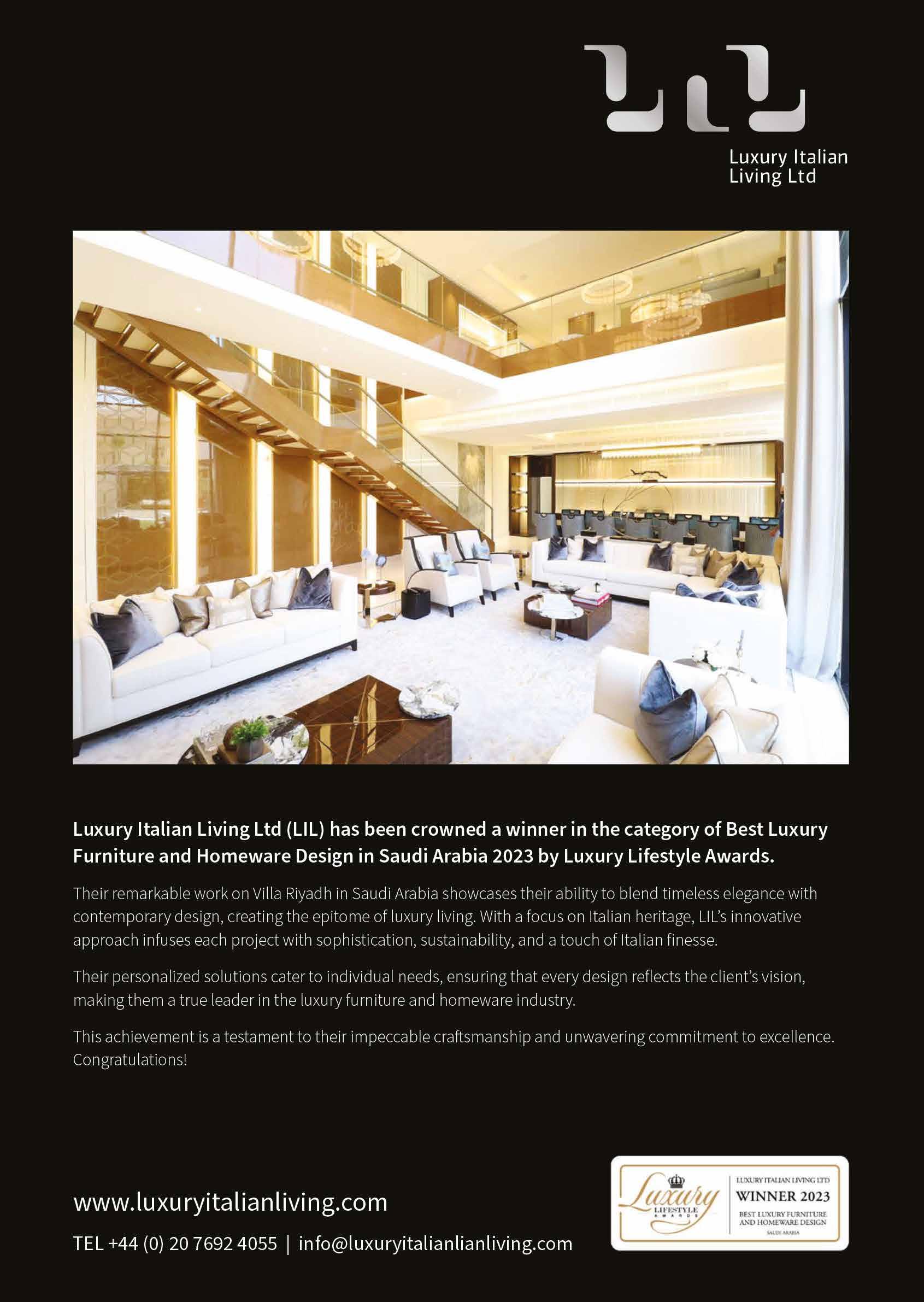 LUXURY ITALIAN LIVING LTD WINNER 2023 BEST LUXURY FURNITURE AND HOMEWARE DESIGN SAUDI ARABIA