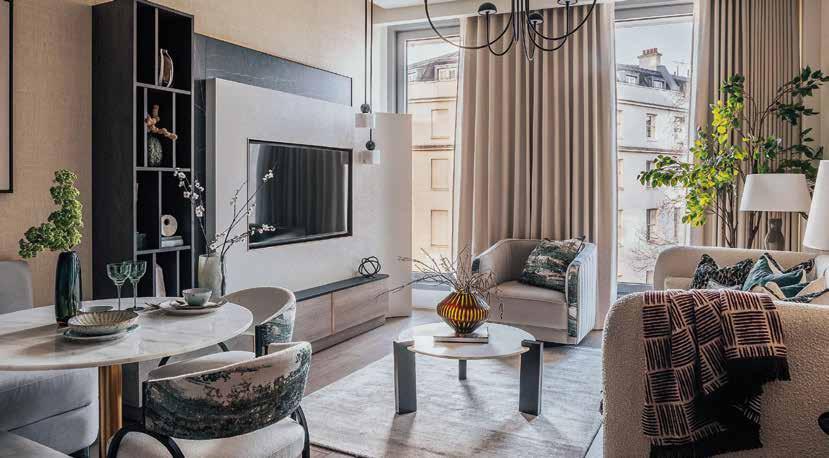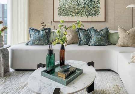 At Prince of Wales Drive, this approach manifests in a dialogue between interior and landscape. Natural wood and green glass accents don’t just reference the surrounding parklandthey draw it inward, allowing light to carry that connection through the apartment. As daylight shifts, so too does the atmosphere: bright and energising in the morning, softer and more restorative by evening. The space adapts to the rhythm of the day, supporting different states of mind without needing to be reconfigured.