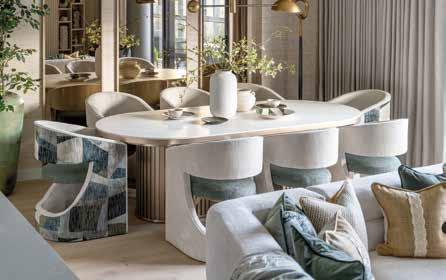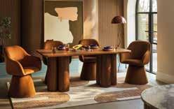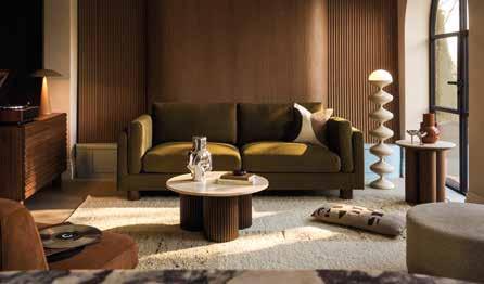 Inspired by 70s revival design, the collection explores contrast with confidence enhanced by 80’s inspired styling. Brushed chrome sits alongside plush velvets, textured bouclé compliments smooth walnut-stained wood, and sculptural silhouettes are balanced by relaxed proportions. These juxtapositions reflect how we live today, mixing eras, materials and moods with ease. These subtle nods to different musical decades throughout the collection reinforce the idea that timeless design, like great music, transcends trends. Colour is equally intentional. Walnut and espresso browns ground the collection, providing warmth and cohesion across statement pieces, like the Harrison and Viva Accent chairs. Earthy moss greens and caramel tones add depth, while burgundies and lighter stone hues lift and balance the palette.