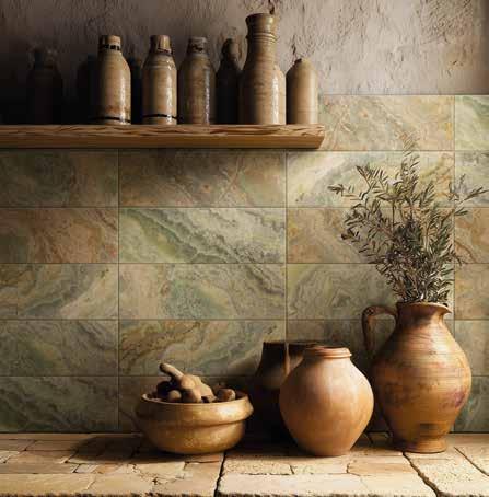 visual movement, and brings an easy familiarity to any room, whether that is a pared-back bathroom or a kitchen rich in colour.