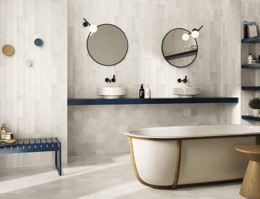 Not only will its creamy off-white hues help smaller bathrooms feel more open, but in larger spaces tiles in Cloud Dancer-esque shades will provide a serene backdrop that lets textures and finishes shine.