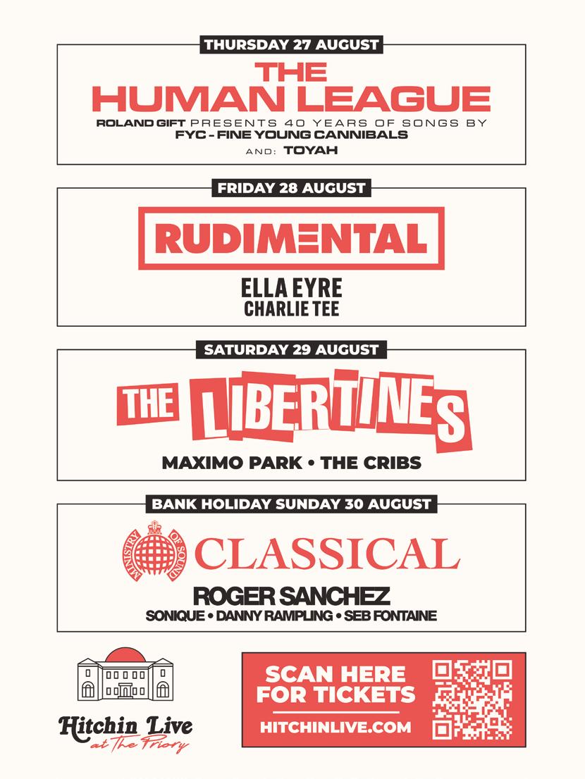 With such a diverse lineup, from 80s synth-pop to drum & bass, indie rock, and orchestral dance classics, Hitchin Live at The Priory promises to appeal to audiences of all generations. Whether you’re a lifelong fan of The Human League, a clubbing enthusiast, or discovering new talent, this new open-air series is shaping up to be a summer highlight.