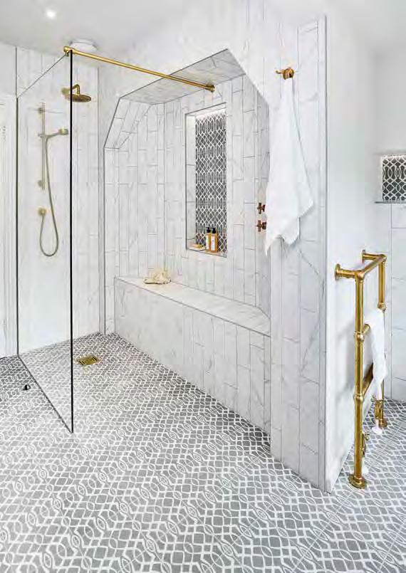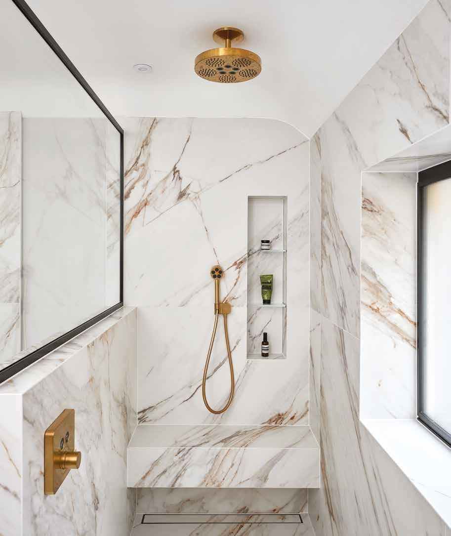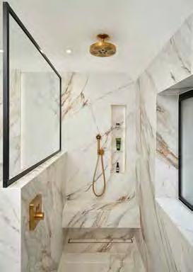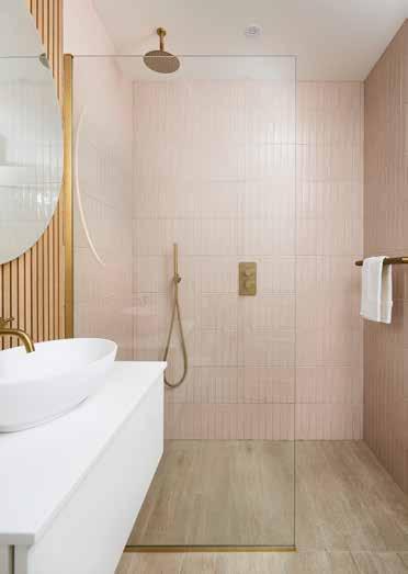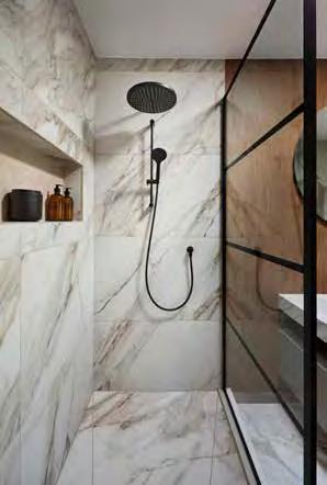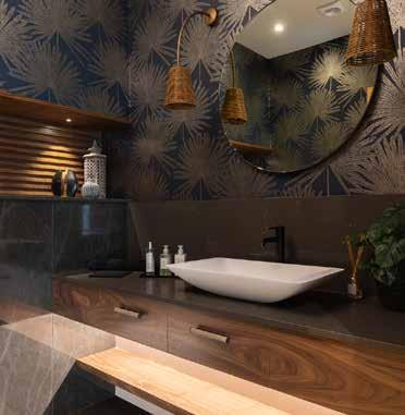 textured tiles and warm metallic finishes help to create a space that feels both timeless and comforting. Natural-inspired palettes, paired with tactile surfaces, add depth and interest without overwhelming the design. Lighting, too, should be carefully considered. Integrated, dimmable lighting allows you to shift the atmosphere effortlessly, creating a bright, functional space when needed or a softer, more ambient setting for relaxation.