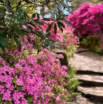 Here the rhododendrons were cut back hard a few years ago, and while it looked as startling as a new haircut to begin with, the shrubs have now grown back with renewed health and vigour, putting on a vibrant display.