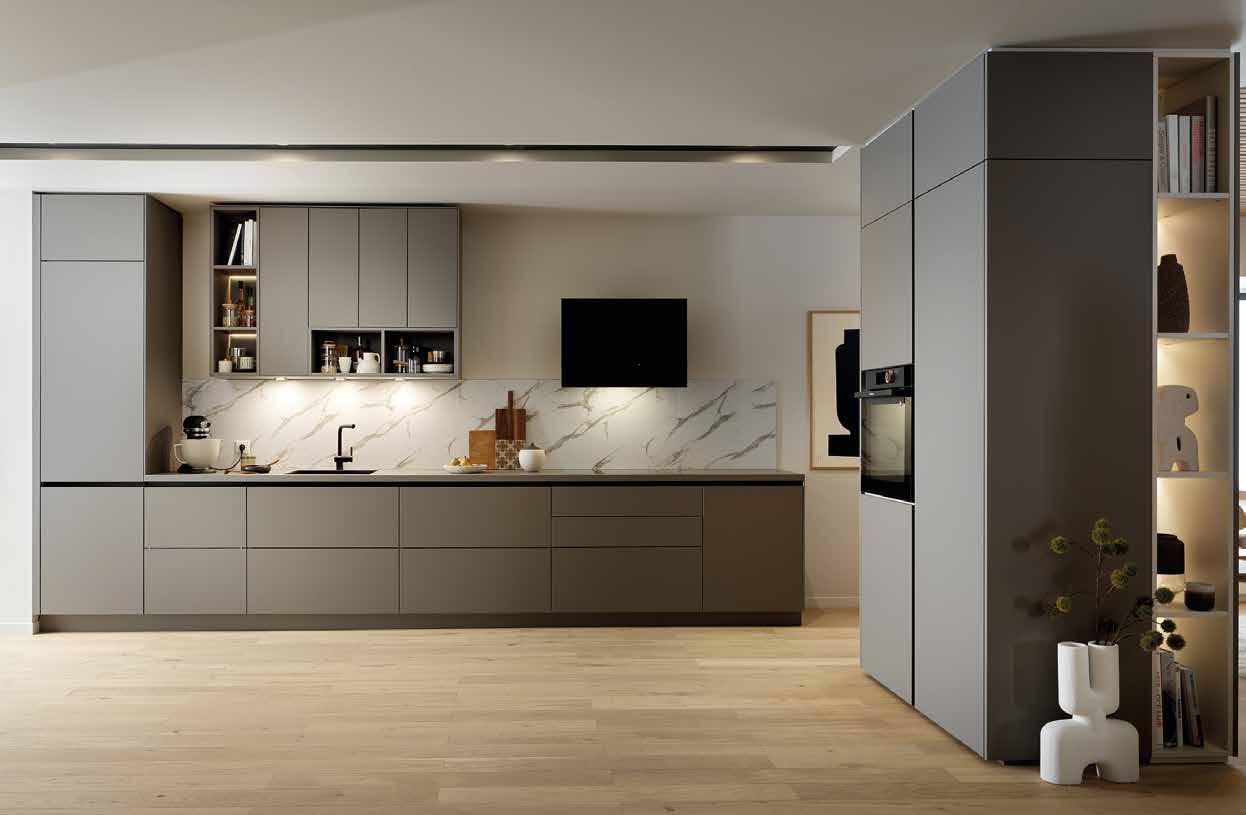 No detail is too much for Schmidt. The top of the base cabinets for instance feature a discreet built-in profile while drawers can be opened with a simple touch. There is also a choice of appliances to suit all culinary needs, with flush-fit induction hobs, state-ofthe-art ovens, microwaves and coffee machines plus energy and water efficient dishwashers.