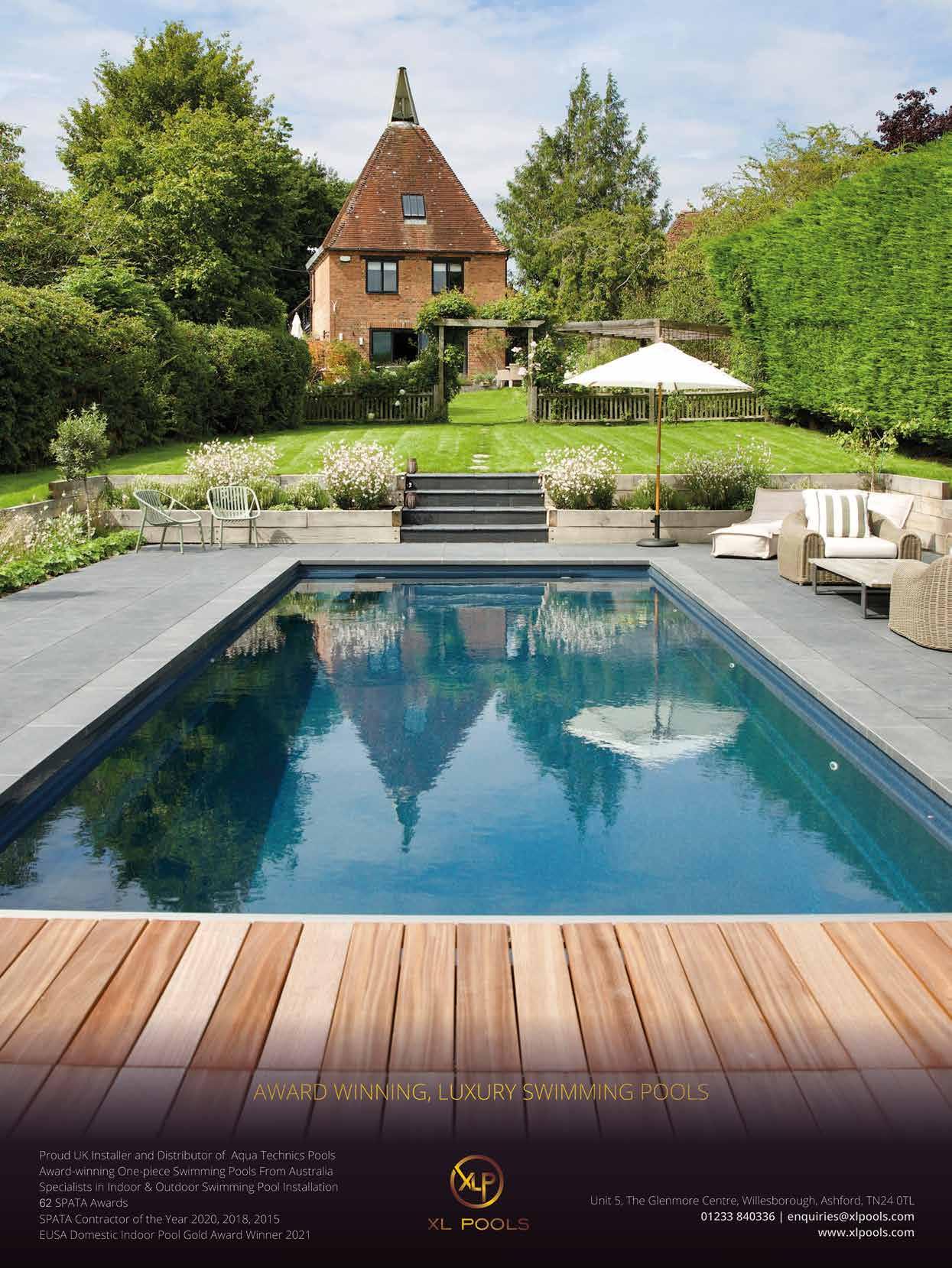 Over the past decade, the British garden has evolved from a simple green space into a fully realised extension of the home. What was once reserved for patios and occasional summer gatherings has transformed into a yearround outdoor living environment — complete with kitchens, lounge areas, fire features and increasingly, statement swimming pools.