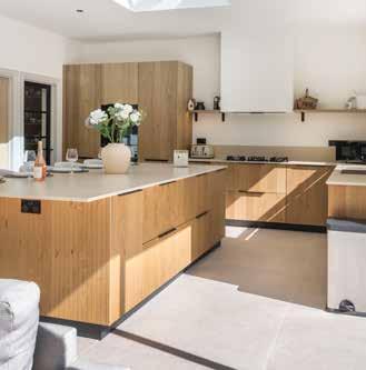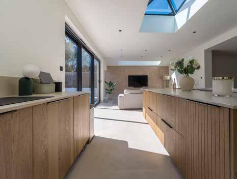Central to the kitchen’s impact is the large island, with Bosca Stria doors. Their textured surface adds both visual depth and architectural flow.