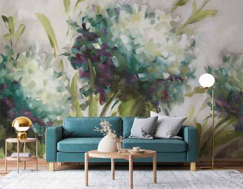 Large-scale abstract designs turn plain walls into dynamic focal points, adding depth and movement to the space.