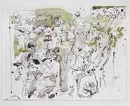 British artist Annie Morris was specially commissioned to create an installation which runs across the entire space. Morris was inspired by the historic relationship between bars and artists, and how artists sit, observe, sketch and chat in bars and