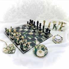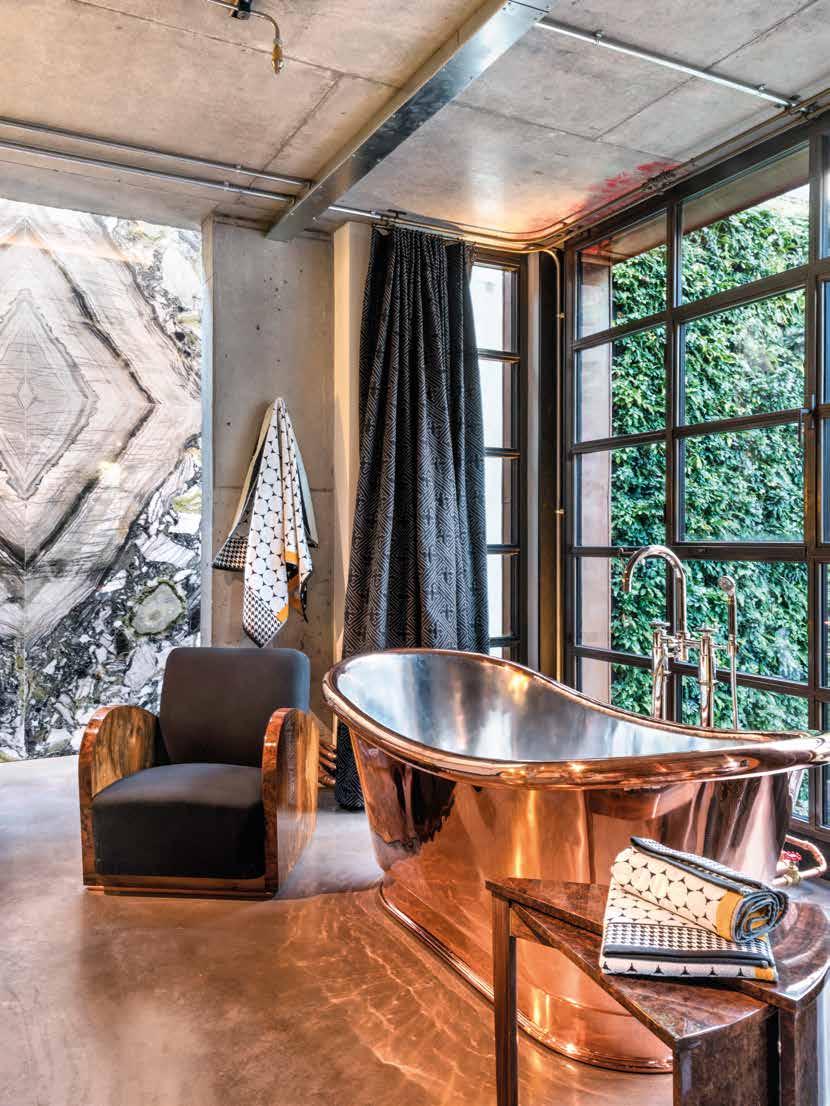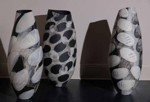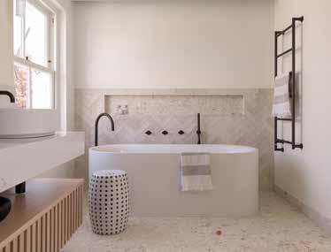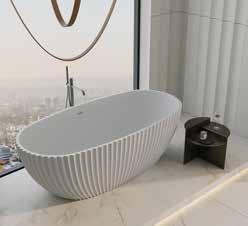 collection, also available exclusively from Lapicida London. Crafted from contrasting natural stone, such as travertine, marble, and basalt, pieces are cut into geometric shapes and assembled into striking surface designs. The innovative collection is bold and artistic, designed to bring a unique look to walls, floors and other surfaces. Highlights also include the exciting new ninefifty range of handmade and industrial terracotta and lava stone with unique glazes and stains.