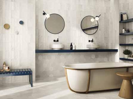 Not only will its creamy off-white hues help smaller bathrooms feel more open, but in larger spaces tiles in Cloud Dancer-esque shades will provide a serene backdrop that lets textures and finishes shine.