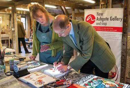 Below, left: Jane Browne leads a textiles workshop in a Farnham community festival, organised by New Ashgate Gallery in partnership with the Farnham town Council, supported by South Street Trust.