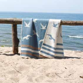 You can almost feel the sand between your toes and smell the sea air with this seaside themed, pure 80% wool 20% cotton stitched blanket featuring a flock of white seagulls. The perfect sea blue and soft brown nautical blanket–you can invite the seagulls to your picnic without risking your sandwiches! This blanket is double-sided and as a result is fully reversible, in effect, giving you two blankets in one. You will find the same design in an inverted colour scheme on the reverse side. jjtextile.co.uk