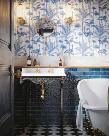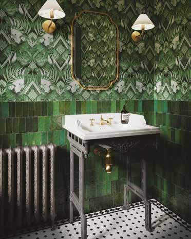 “Create exciting design moments by pairing tiles with a bold wallpaper. There’s nothing quite like the power of print to transform an otherwise functional room”