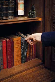 A discreet yet striking feature of the project is a concealed door, seamlessly integrated within the shelving to maintain the visual rhythm of the room. Hidden in plain sight, the opening mechanism is activated by a carefully chosen book, positioned among the volumes to appear entirely at home. A simple pull sets the mechanism in motion, revealing what lies beyond.