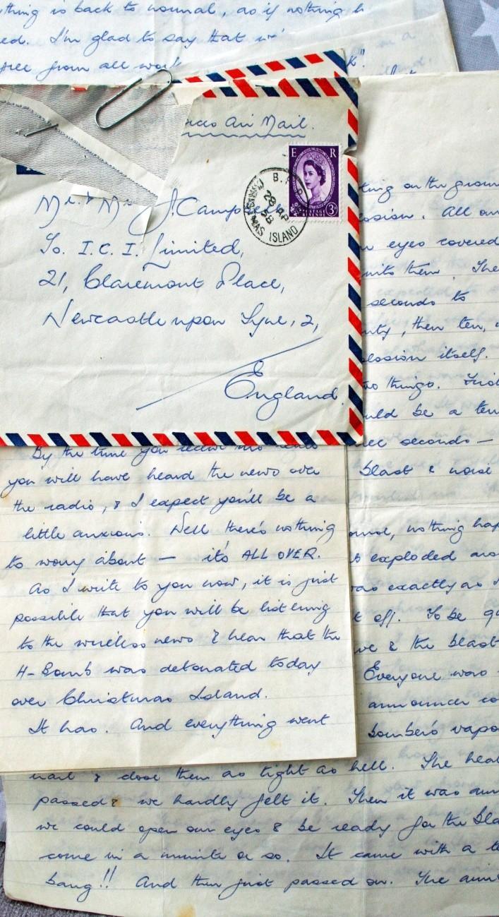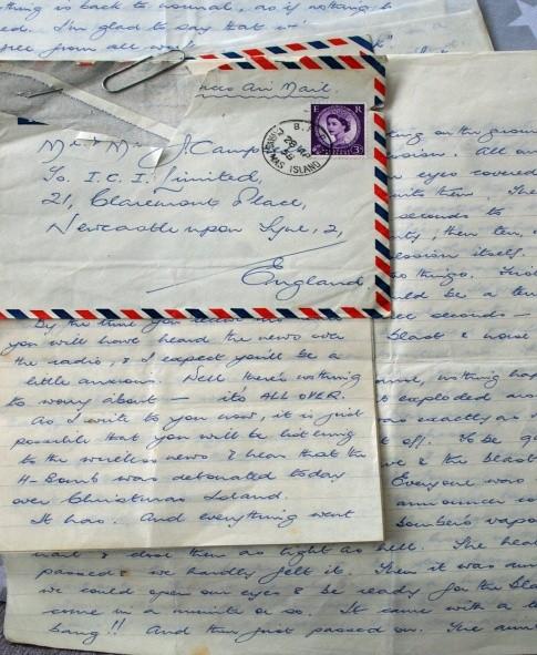 Another describes a stay in hospital just after another H-Bomb explosion on September 2, 1958. “I’m sorry I didn’t write to you straight after the fireworks, but I was feeling damned tired indeed…”