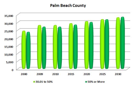 In Palm Beach County, the average monthly lease for a two bedroom apartment increased from $757 in 2000 to $1,292 in 2011, an increase of 71 percent;