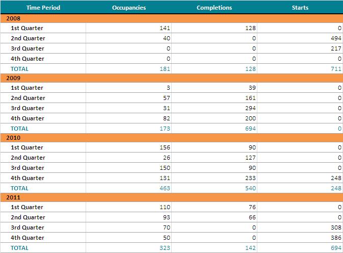 Source: U.S Census 2000 General Population & Housing Characteristics SF 1 (DP-1), U.S. Census 2000 Profile of Selected Housing SF 4 (DP-4), U.S. ACS 2007 Demographic & Housing 1 Year Estimate (DP05), U.S. ACS 2006 Selected Housing Characteristics 1 Year Estimate (DP04), U.S. ACS 2007 Selected Social Characteristics 1 Year Estimate (DP02), U.S. Census 2010 Demographic Profile (DP-1), U.S. ACS 2010 Selected Housing Characteristics 1 Year Estimate (DP04)