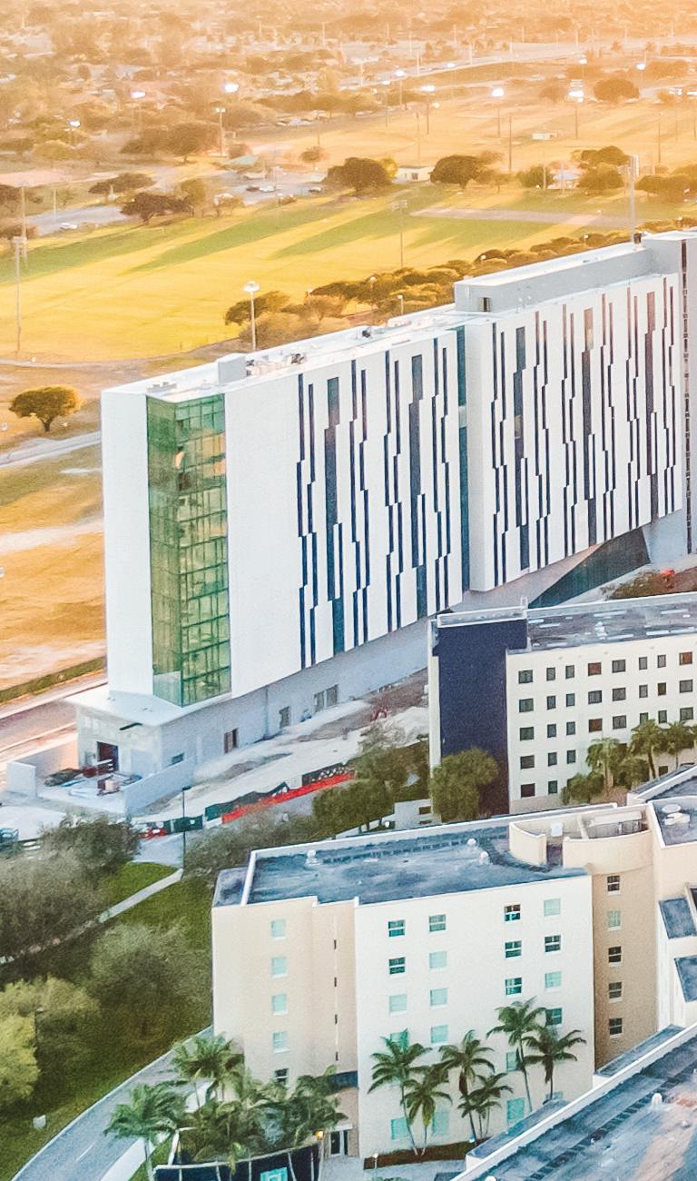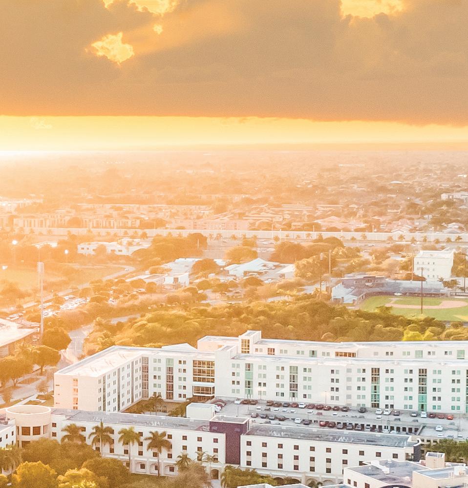 HOME SWEET HOME: In the fall FIU will open its latest residence hall at the Modesto A. Maidique Campus, a 13-story, 600-bed high rise with views of the Miami skyline on one side and the football stadium and Florida Everglades on the other. The new dormitory joins six others, pictured, to form a dynamic living-learning community with access to every amenity that campus and greater South Florida have to offer.