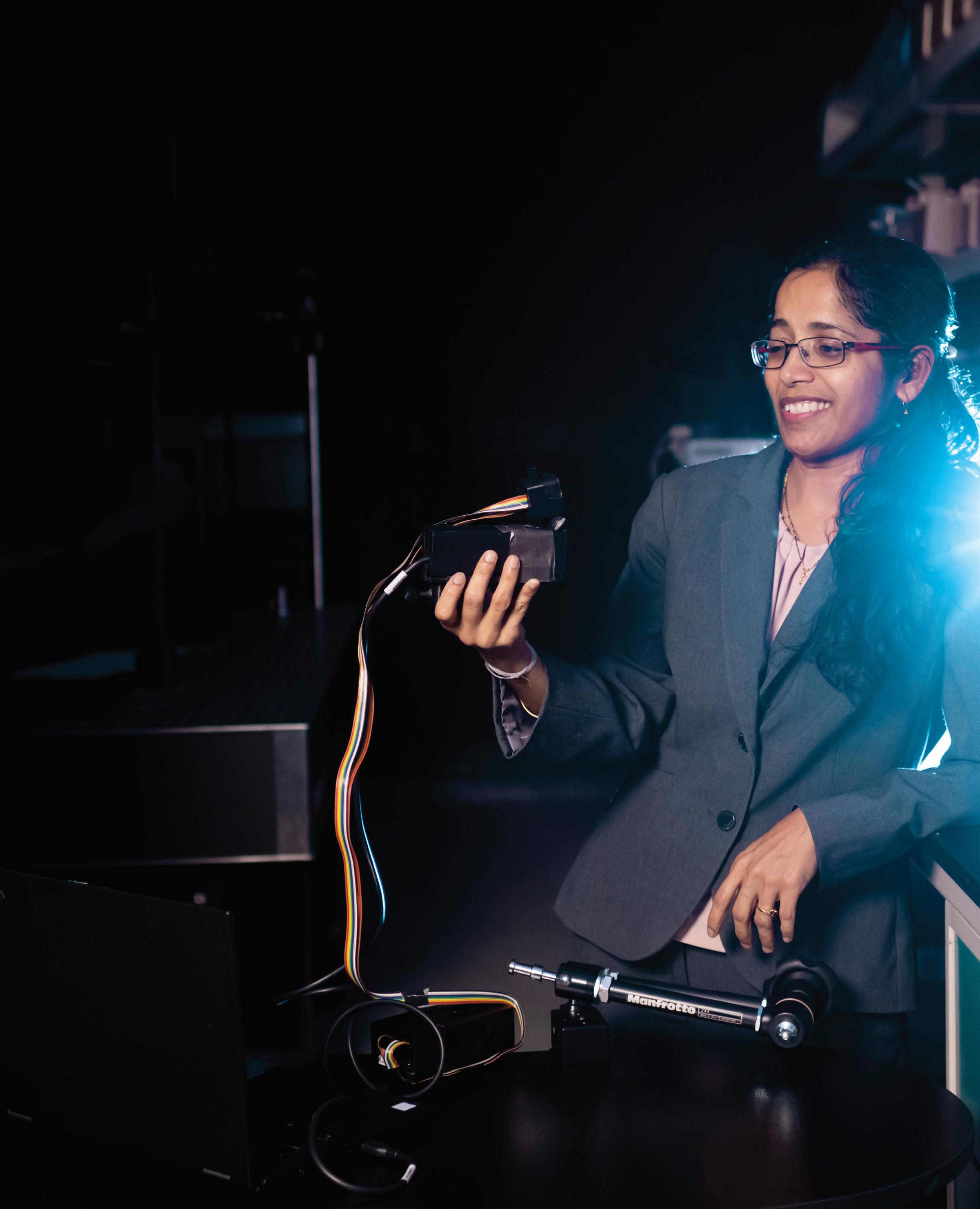 Anuradha Godavarty has created new technology that she hopes will help doctors spot and reverse devastating medical conditions that affect millions worldwide — and the National Academy of Inventors has already recognized her for her efforts. Named a senior member of the organization in 2021, the associate professor of biomedical engineering has for years sought to harness the use of near-infrared, or invisible, light in the service of life-saving imaging.