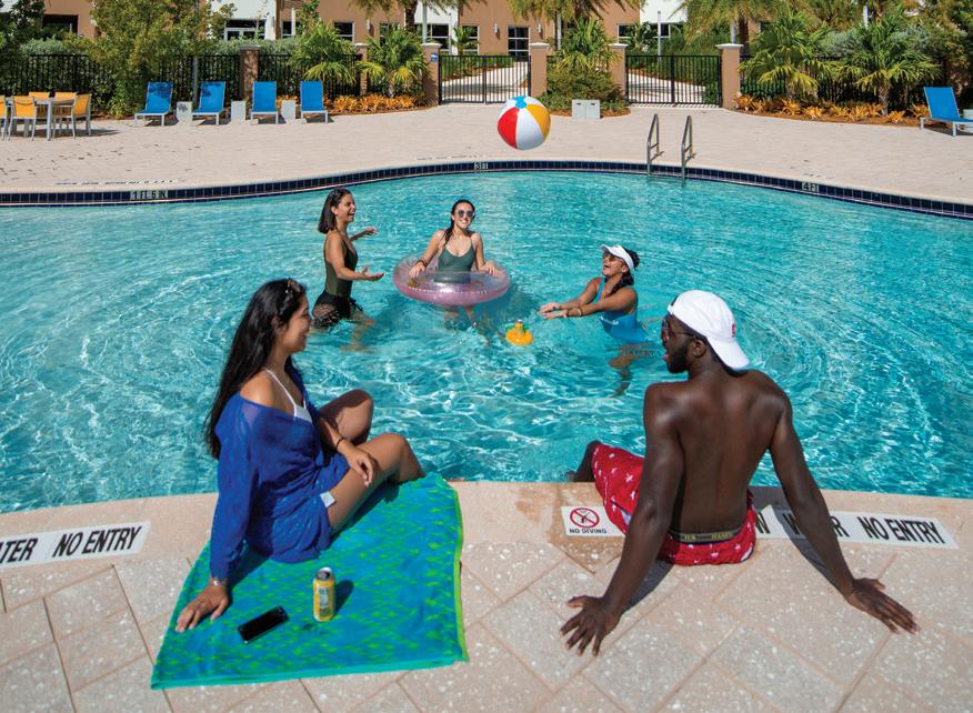 Catching rays poolside. Cheering on one of our 17 NCAA D-1 sports programs. Deciding among our seriously craveable dining options. Chilling with friends. It’s not just about reducing your commute (although that’s a really great perk). Living on campus means never missing out!