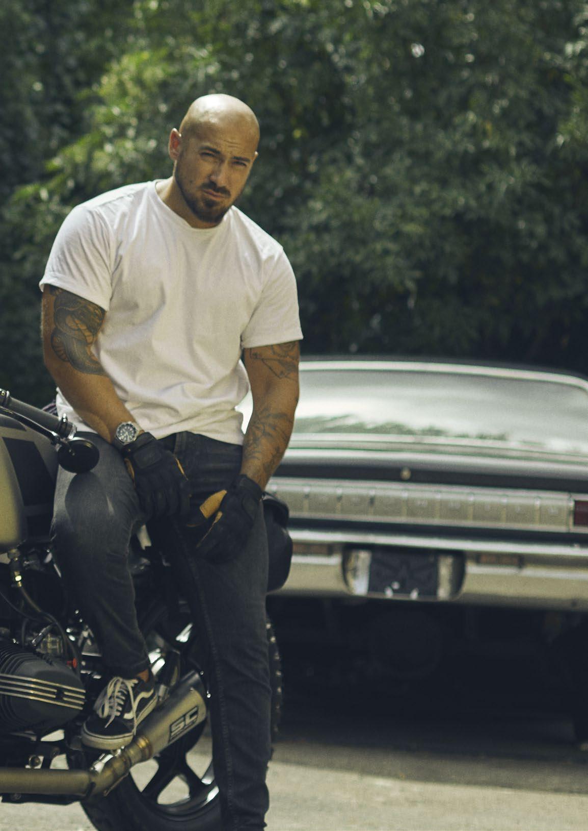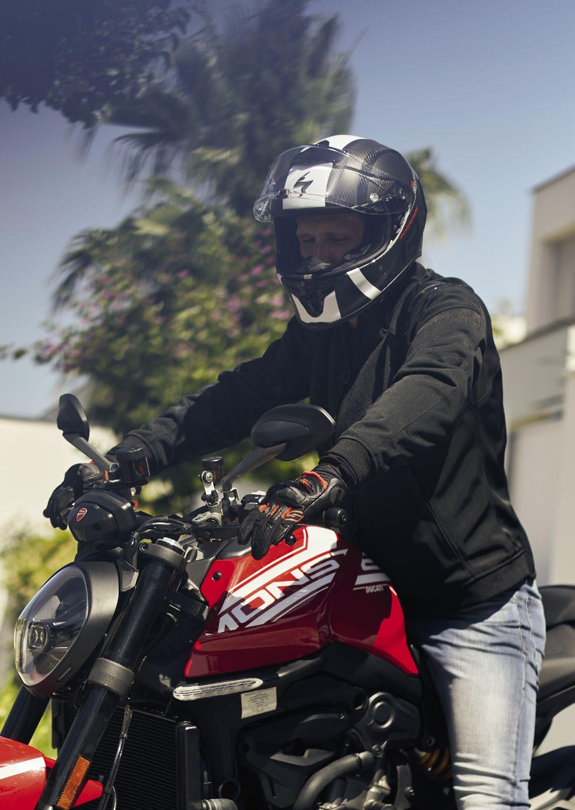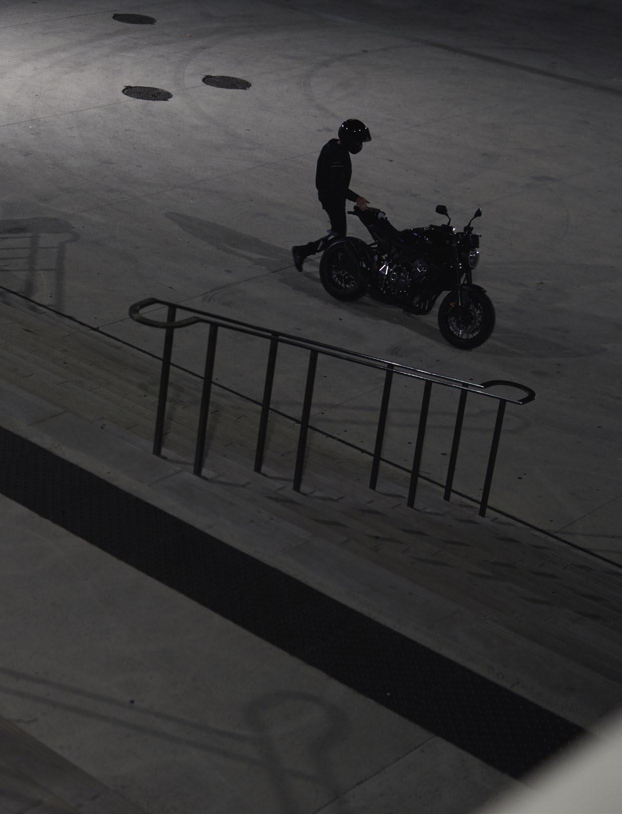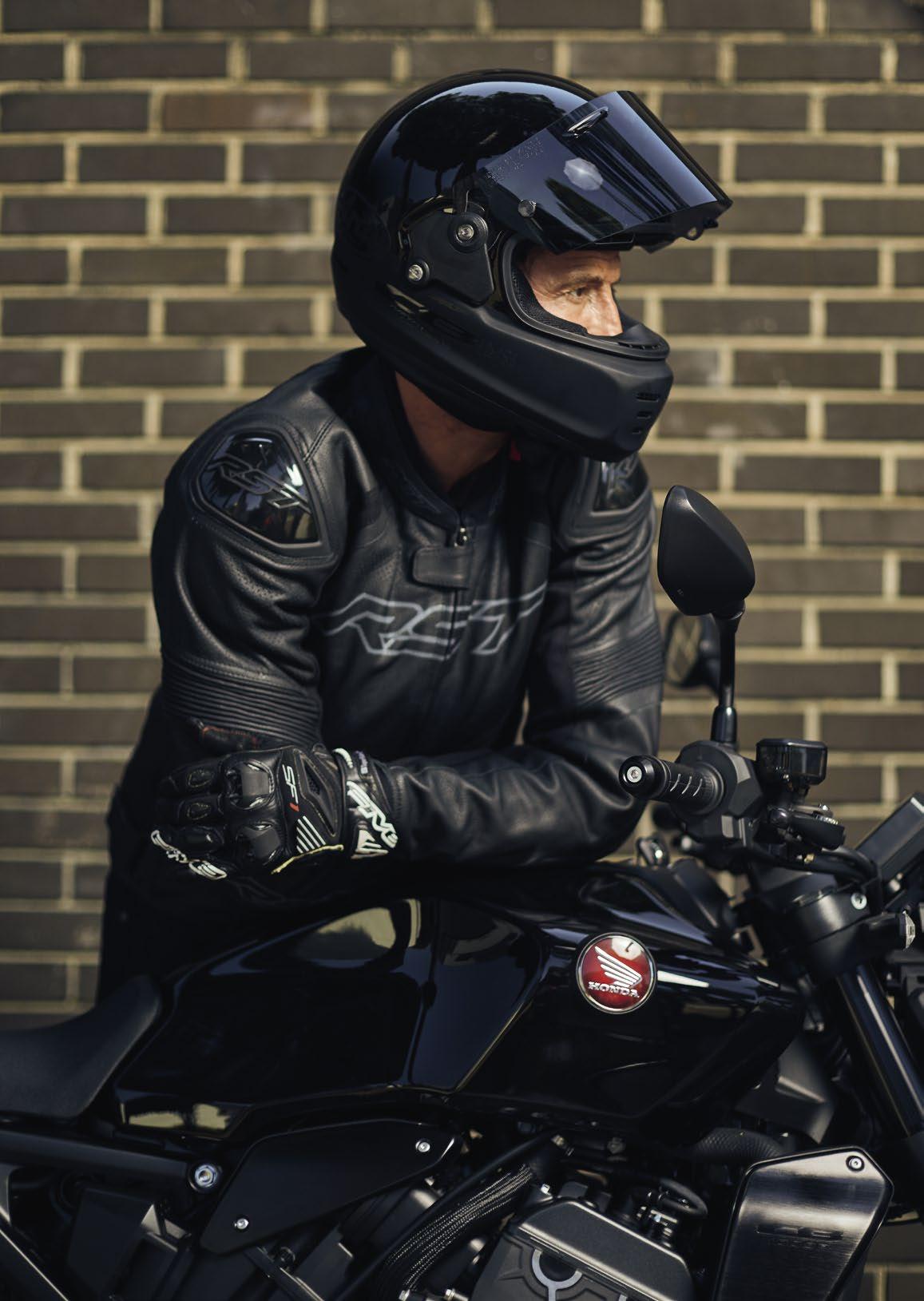 And he loves sneakers just like a kid, feverishly collecting them. He owns many rare pairs whose sometimes inestimable value hasn’t stopped him from wearing them on an everyday basis. Seb takes care of his appearance, out on the town and when he’s riding. He has a real appreciation for exceptional products and first-class equipment. And so, he has naturally chosen to wear our RFX Race, the ultimate Racing glove, for his countless days on the track, and has joined us as a FIVE ambassador. When we talked to him about the new STUNT EVO2, he became an immediate fan of the innovative concept and avant-garde look of the product. Combining a pair of bright-red STUNT EVO2s with an all-black outfit (and motorcycle) seemed like the obvious choice to him. And the results are stunning. Like a pair of iconic sneakers that you wear as an outward sign of “wealth” (in the sense that it makes you look great and signals that you’re a connoisseur…), the STUNT EVO2 can and should be worn with pride. As both a distinguished rider and a fan of urban looks, Sébastien CHARPENTIER was truly the perfect man to represent our new, iconic style throughout these pages…
