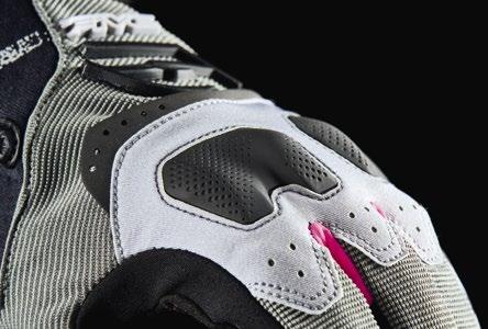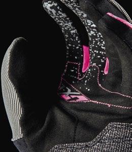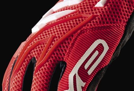 SuperFabric® – Matériau hautement résistant à l’abrasion et aux élé ments coupants ou tranchants, composé d’une base de tissu dont la surface est couverte d’innombrables points de résine en relief agissant comme barrière de protection. Il s’avère également étanche et respi rant. Nous l’utilisons principalement sur nos gants haute performance.