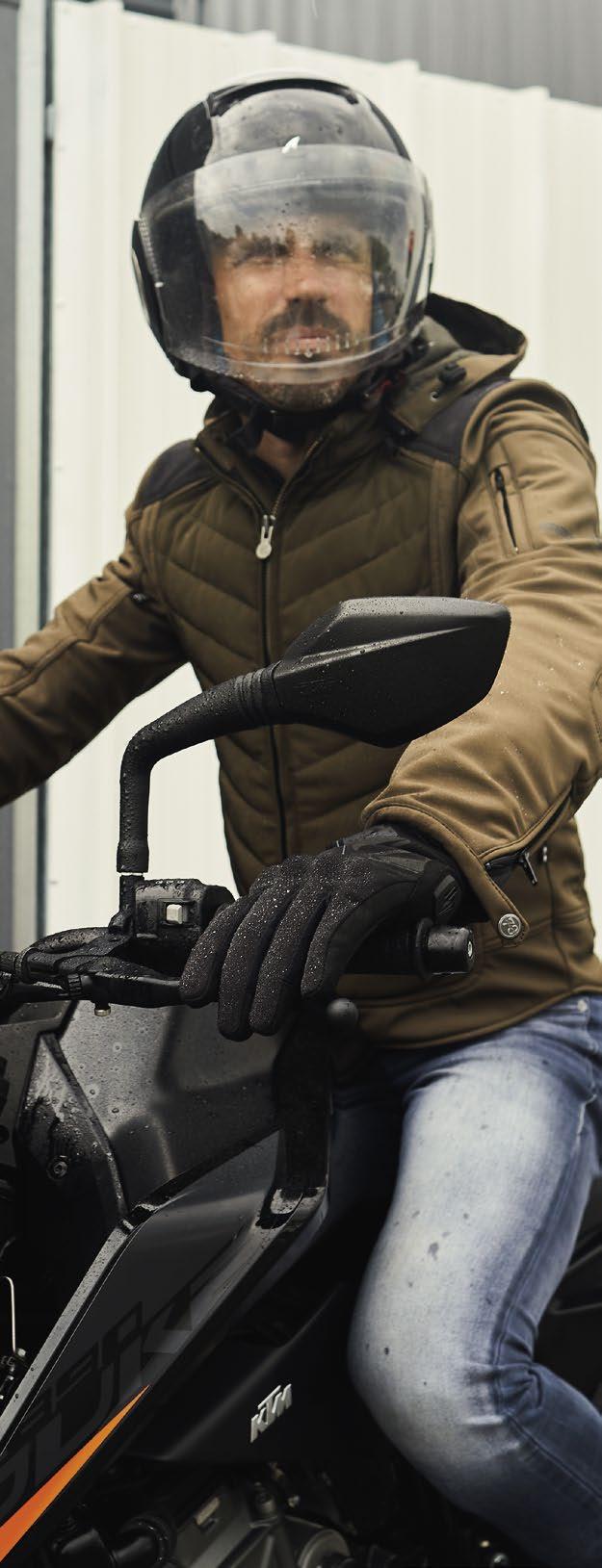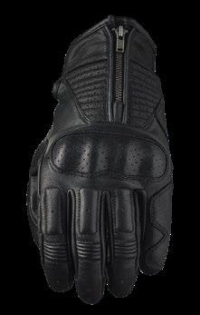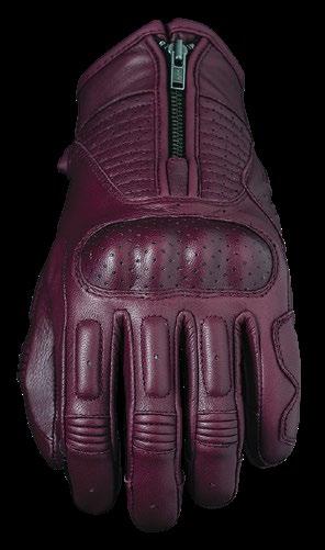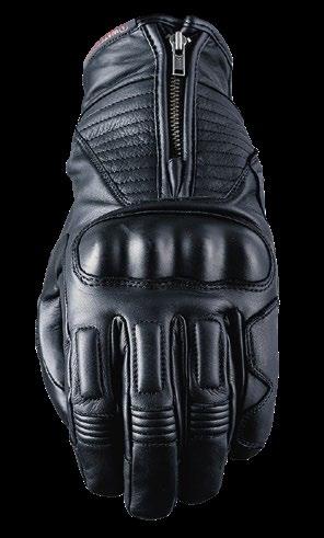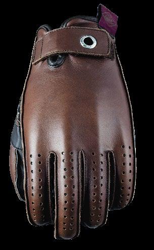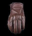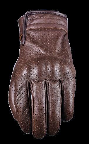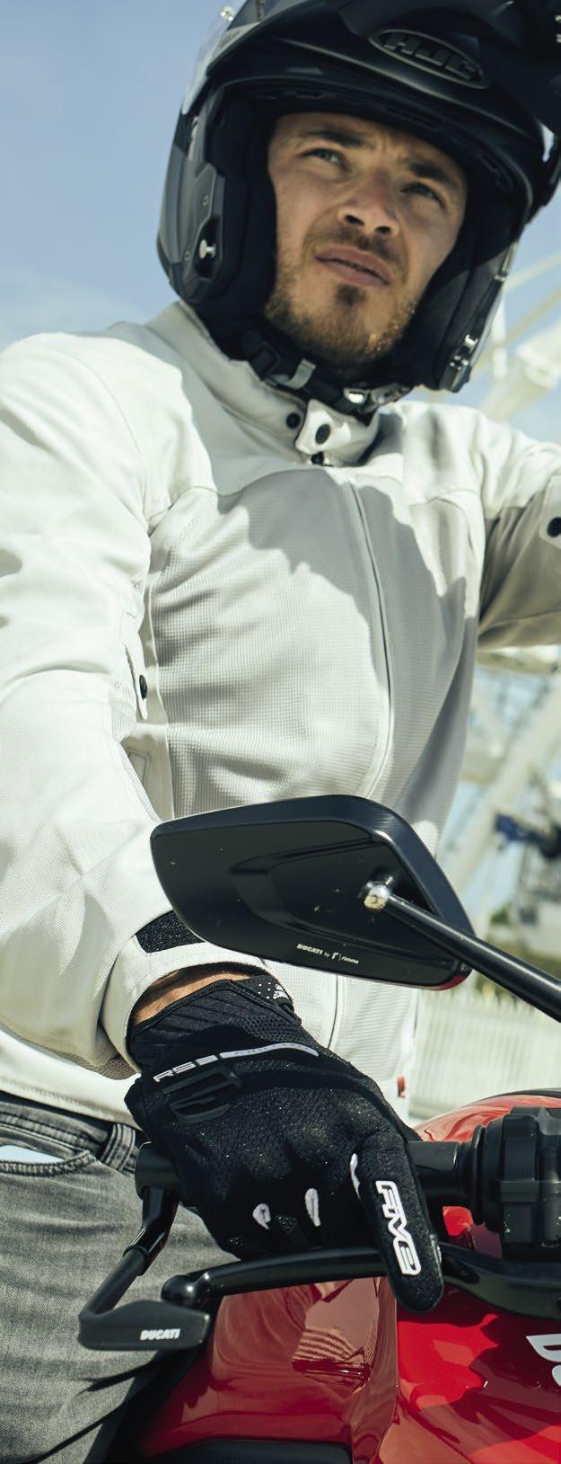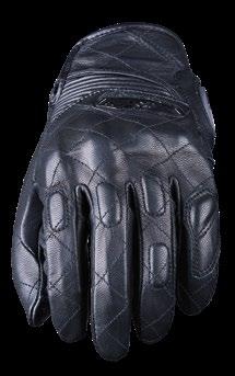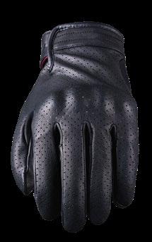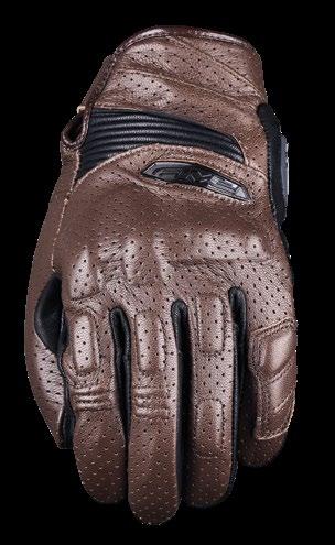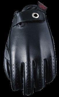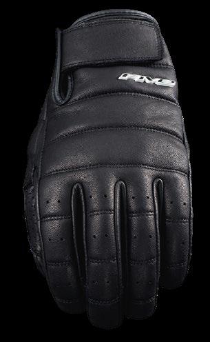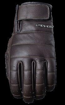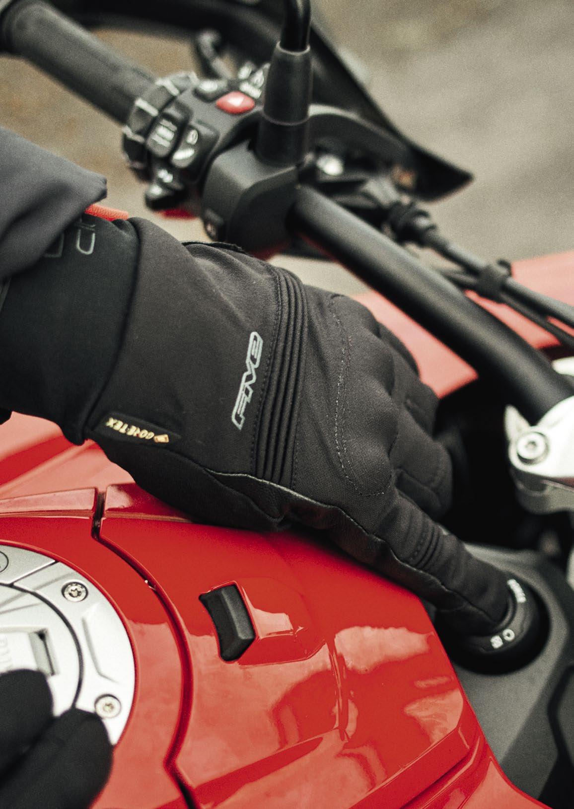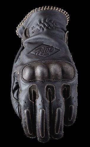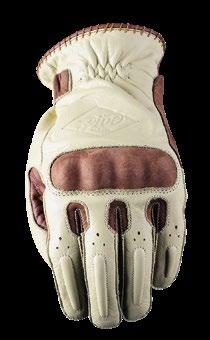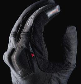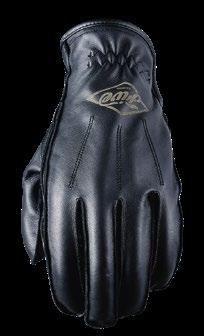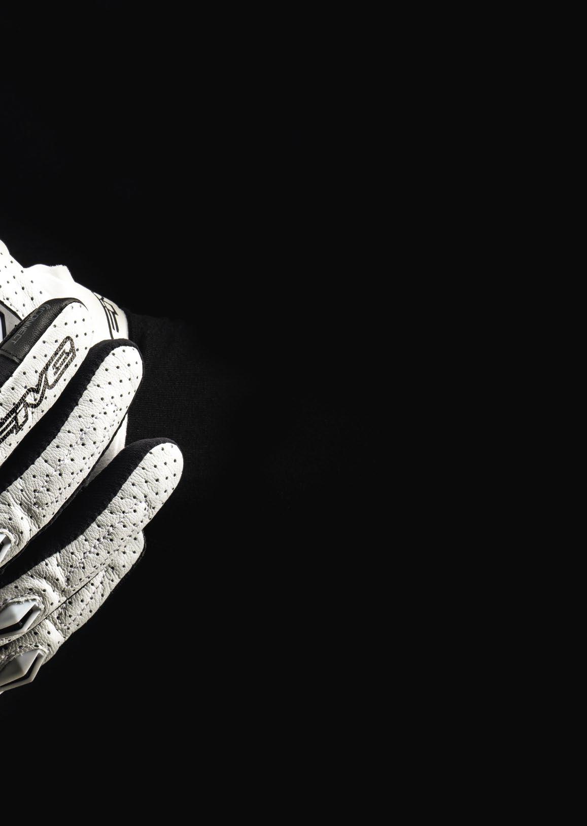 Pour choisir le gant qui vous convient, plusieurs facteurs sont à prendre en considération. Le type de moto pilotée. La saison à laquelle il sera utilisé (doit-il être ventilé ? doit-il être chauffant ?). La distance moyenne parcourue. La fréquence d’utilisation. Le niveau de protection et de confort requis. Votre budget. Si en théorie, plus un gant est pro tecteur, moins il est confortable, tout notre travail chez FIVE consiste à inverser cette équation et à rendre confortable un gant très protec teur… et vice versa. Évidemment, aucun gant ne saurait vous protéger totalement en cas d’accident. Cela dit, les gants FIVE sont conçus pour limiter les risques de blessure et répondent aux certifications CE Moto (avec l’étiquette correspondante cousue à l’intérieur sur laquelle figure le picto Moto, obligatoire dans certains pays) selon trois niveaux : CE (gants sans coque de protection), CE KP1 (gants avec coques de protec tion, protection de bon niveau) et CE KP2 (gants avec coques de protec tion, protection supérieure). Nous considérons que chaque typologie de moto et de pilote mérite un gant spécifiquement adapté. Mais cela ne nous empêche pas de proposer certains produits plus transversaux et polyvalents. Notre ambition est de vous offrir le plus large choix pos sible, tout en vous permettant de déterminer le gant idéal pour… VOUS.