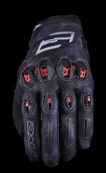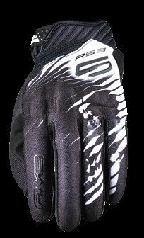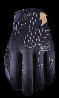 DESIGN – car nous attachons une importance à l’esthétique fonction nelle. Selon nous, la forme de chacune des pièces qui composent un gant résulte du rôle qui lui est attribué (protection, confort, ventilation, résistance à l’abrasion…). Voilà pourquoi nous dessinons et concevons spécifiquement chaque élément, sans jamais utiliser de pièces stan dard, afin qu’un gant FIVE se révèle exclusif et distinctif. Nos designs sont souvent copiés, mais jamais égalés ! Alors autant opter pour l’ori ginal, FIVE.