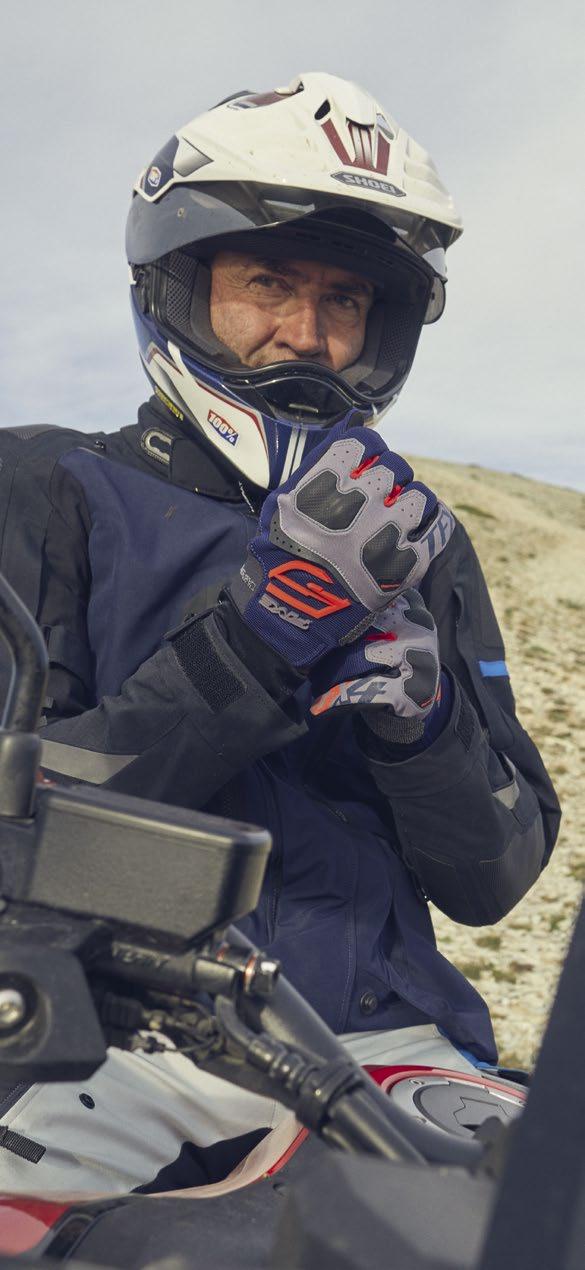 SPECIAL THANKS : To our 2023 cover boy Sébastien CHARPENTIER (also starring in Street & Racing section). To our ambassador and moto-sport legend Jean-Michel BAYLE (Trail-Adventure). To our amazing models and riders: Alison (Woman) / Florian MARINO (Racing) / Jean-Jacques “O’Math” MATHIEU (Street) / Cédric LEFEVRE (Street), Pierre DOREZ (Street), Théo BOLLEY (Street, Winter) / Benjamin & Matthieu PIANELLI bros (Custom) / Mehdi BENDREF (Custom) / Virgil AUBRIOT (Winter) / Tim DURAND & Louis LUTTRINGER (Heated Gloves) / Stef F (Trail-Adventure, Winter, HG). To our friends at Moto Park, Motoshop 34, BMW Moto Sud