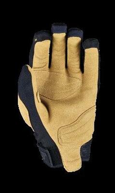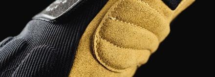 Renfort palmaire – Élément en cuir, tissu ou PU Grip, visant à accroître le confort du gant au niveau de la paume, l’adhérence aux poignées, et la résistance aux frottements.