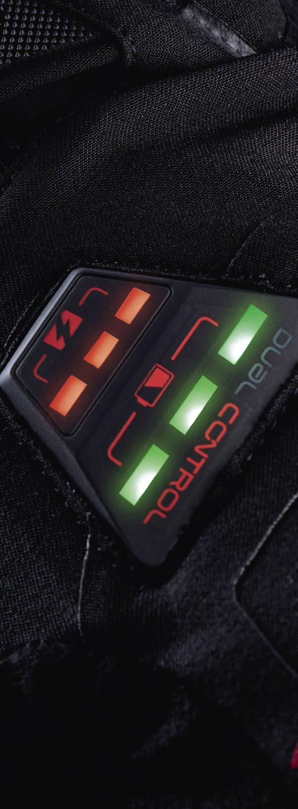 DUAL CONTROL – Système de commande de chauffe à bouton unique (implémenté sur la dernière génération de gants chauffants FIVE HG) permettant de contrôler simultanément la puissance de chauffe des deux gants à partir d’un seul bouton, situé sur la main droite, les deux gants étant connectés entre eux sans fil.
