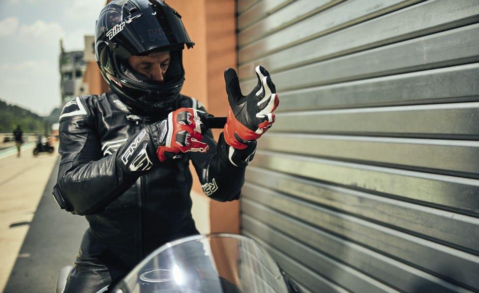 Ils offriront à leur pilote la garantie d’un gant efficace, performant et protecteur. Vous ne roulerez peut-être jamais sur circuit, mais qu’im porte. Si certains de nos gants Racing sont clairement développés pour la compétition, d’autres s’avèrent plus polyvalents et vous satis feront au guidon de votre propre machine au quotidien… pour peu que vous ayez une âme sportive. De nombreux pilotes de renom ont choisi de porter des gants FIVE au cours de leur carrière, et chacun a contribué au développement des modèles que vous découvrez au jourd’hui. Parmi eux : Andrea DOVISIOSO, Stéphane CHAMBON, Fabio QUARTARARO, Karel ABRAHAM, Jules CLUZEL, Peter HICKMAN, Sébas tien CHARPENTIER, Dominique AEGERTER et bien d’autres. Grâce à eux, nous sommes fiers de vous offrir aujourd’hui la gamme Racing la plus aboutie jamais produite en série.