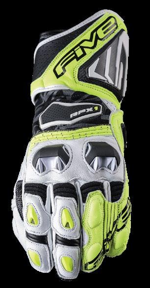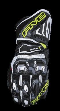 * Le pilotage d’une moto sportive comporte des risques. Les gants FIVE certifiés CE, CE KP1 ou CE KP2 sont conçus afin de réduire les conséquences d’une chute, cependant aucun gant ne saurait prévenir totalement les risques de blessure. Pilotez avec prudence.
