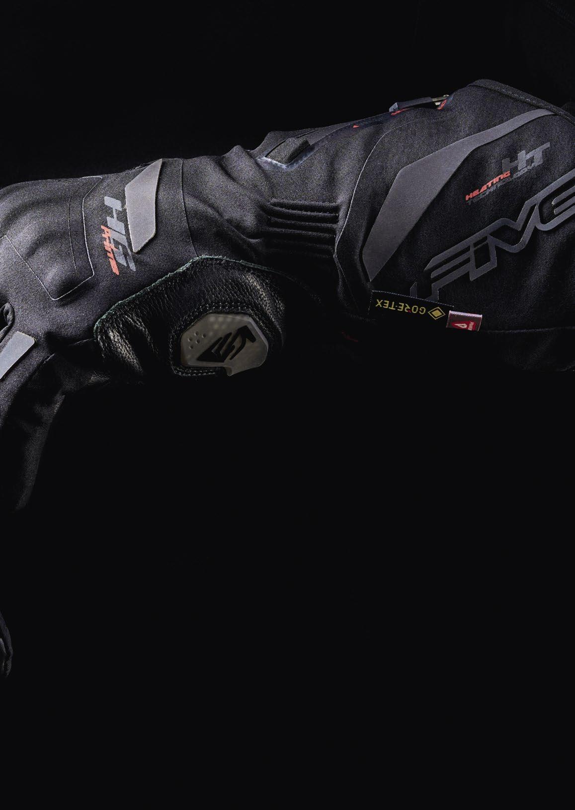 Annecy, for loaning us bikes and equipment. To our amazing riders, both official and unofficial. To our lovely distributors, dealers and customers around the world. And to everyone who helped make this 2023 collection and catalog so great ;) PRODUCT DESIGN & DEVELOPMENT : Seb ARPUTZO, Guillaume SCIUS, Mélys POTTIER, Boris CHAMBON, Matthieu LALLOZ. CATALOG DESIGN & CONTENT : David GAU, Stéphane FRANC © FIVE ADVANCED GLOVES 2022 #fivegloves CE certification EN 13594:2015 Knuckles protective shell Palm slider protective shell Thinsulate™ insulation to protect against cold weather Waterproof membrane Heating System with integrated battery Off-road use only TECHNICAL ICONS DEFINITION Conductive fabric on thumb and index to manipulate touchscreens Conductive fabric on index to manipulate touchscreens Clear Vision Pad™ screen cleaning system on the left hand UNFOLD TO VIEW WHOLE COLLECTION
