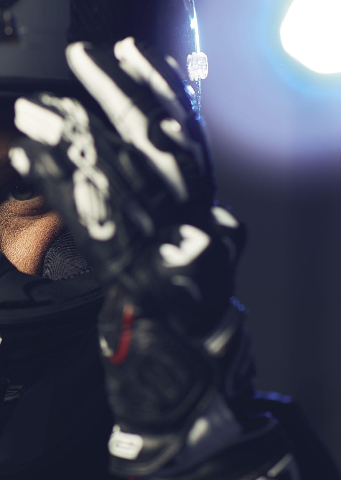FITTING (ou parfait ajustement) – car le gant constitue le lien entre vous et votre moto. Pour profiter du plaisir de piloter un deux roues, ce lien doit pouvoir se faire oublier. Tout en permettant la restitution par faite de chacune de vos décisions au guidon, qu’il s’agisse d’accélérer, de freiner, de modifier votre trajectoire. Bien ressentir les commandes (et, par extension, la moto) est primordial. C’est même un gage supplé mentaire de sécurité. Et cela doit se faire dans un certain confort. Notre volonté est clairement de contribuer au plaisir ressenti en pilotant une moto.