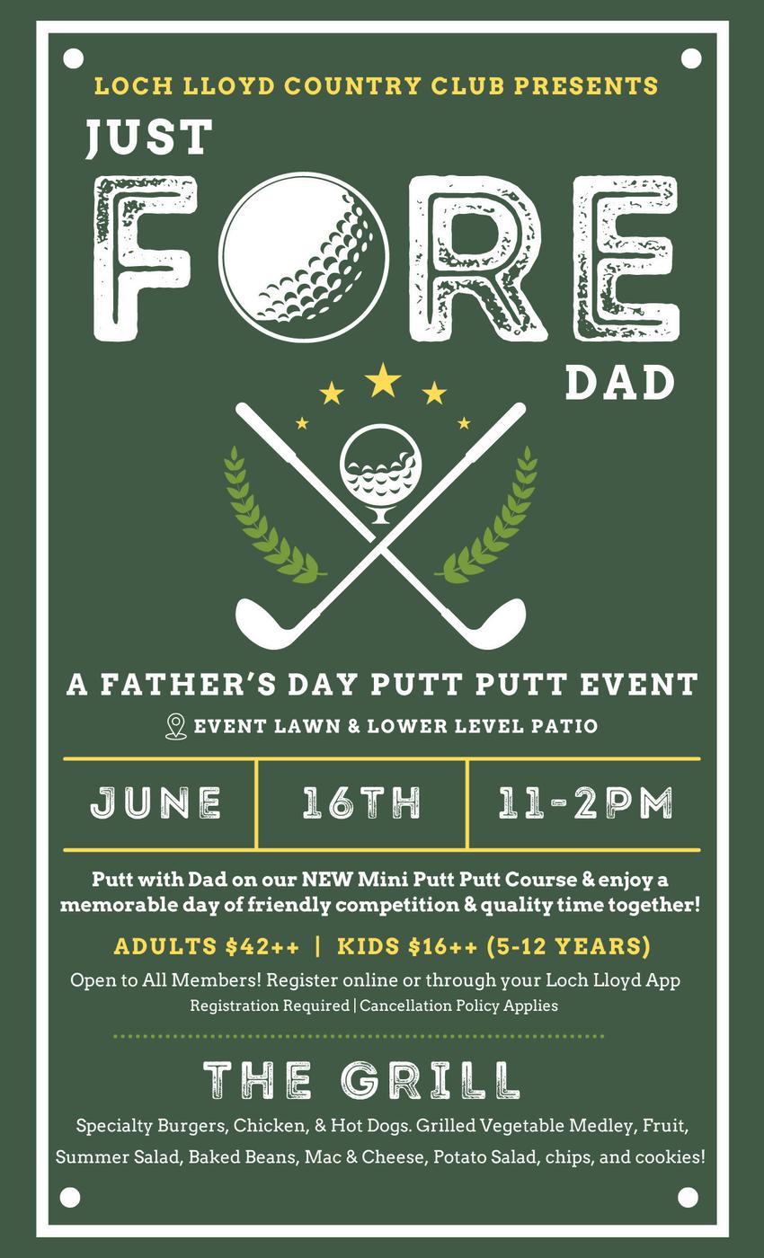Mark your calendars for a Father's Day celebration like no other as we unveil our newest attraction - the Par-Tee Putt Putt Course. Custom-built for Loch Lloyd, this mini golf course promises hours of fun and friendly competition. Bring your loved ones and join us on June 16th for a memorable day filled with laughter, challenges, and delightful surprises. RSVP online today!