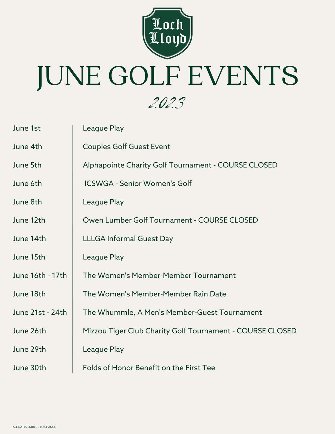Half way into 2023? How can that be! May was bustling with activity in the Club and on the course. It was a pleasure to host the Kentucky Derby party, celebrate our Mother's, drink some wine on 9 and orchestrate the 2023 Scotty June holds the time to celebrate summer accordingly I look forward to seeing each of you at the Club as exciting things are happening here at Loch Lloyd.