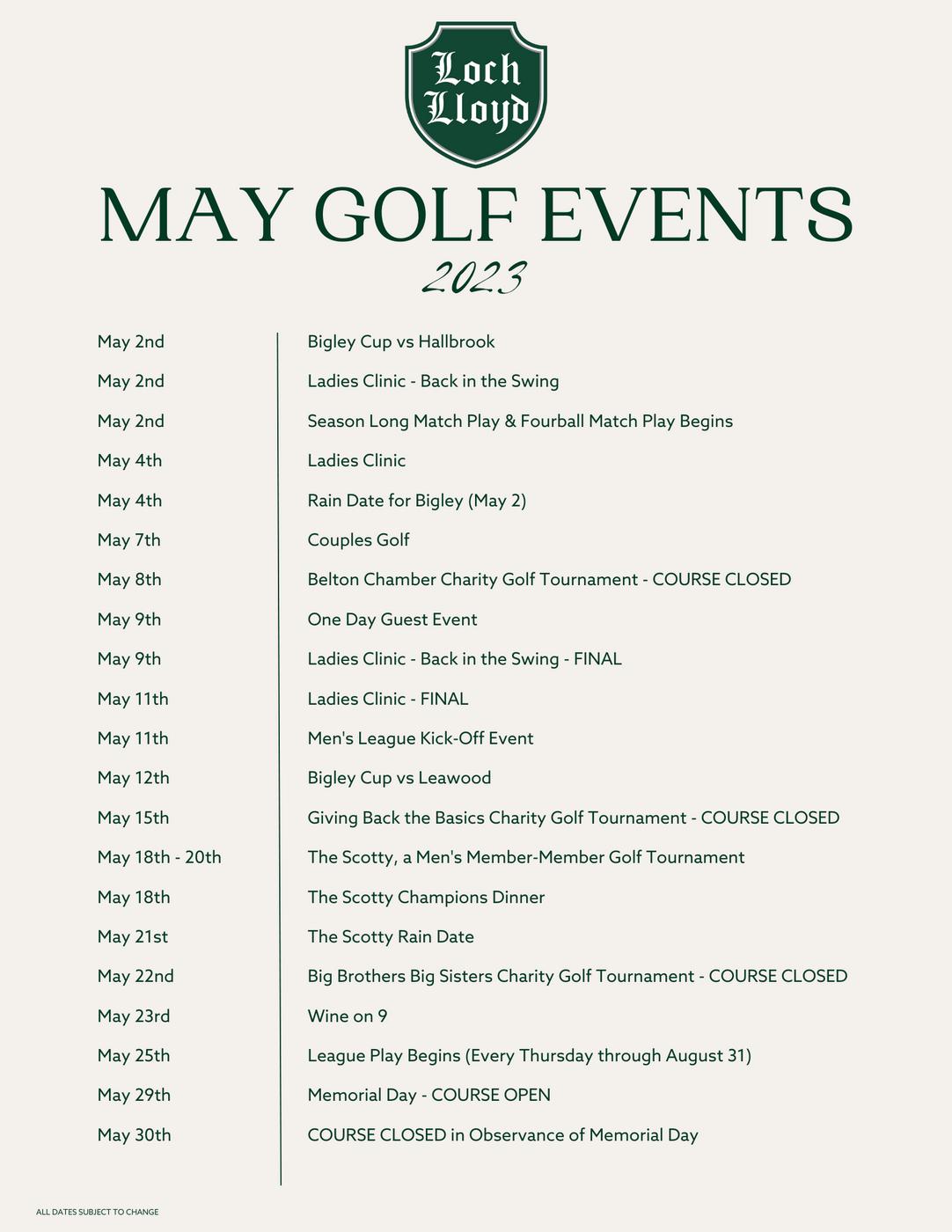 May is always one of best golfing months on the calendar and the month that officially tees off the golfing season. Warmer and drier days start to emerge and that gives everyone the itch to start playing golf on a regular basis whether it be solo or with their regular groups. It is also the month that our tournament season gets underway.