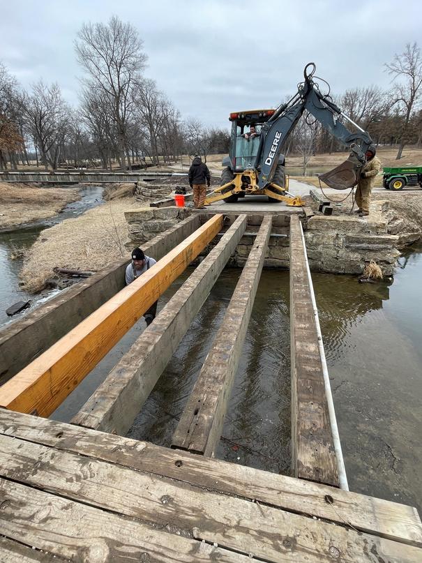 The team of professionals working on the Loch Lloyd golf course maintenance team are second to none Much of the professional skill and hard work of the GCM team can go unseen. This can be exemplified by the task of reconstructing a bridge The GCM team was tasked with reconstructing a bridge after a main support beam had broken and the bridge was deemed unsafe for use After two days the team had the new beam installed and the bridge reconstructed. We do notice other bridges throughout the golf course need repairs and will continue to do so as materials become available this Spring.