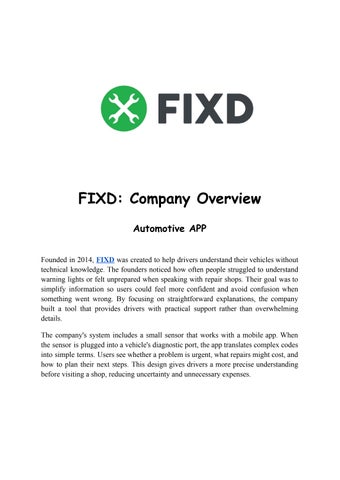 Founded in 2014, FIXD was created to make car ownership simple, transparent, and stress-free. The company was started by three engineering students in Atlanta who wanted to help everyday drivers understand their vehicles without confusion or unnecessary expense. They designed a compact, Bluetooth-enabled sensor that connects to a car's onboard diagnostic system and pairs with a mobile app, translating complex automotive codes into clear, straightforward language. This innovation allows users to see precisely what's wrong with their car, understand how serious the issue is, and get an estimated repair cost in seconds, empowering them to make confident, informed decisions about maintenance and repairs. FIXD Reviews connects through a car's OBD-II port, which is standard in gas-powered vehicles built after 1996 and diesel models produced after 2008. Once plugged in, the sensor pairs wirelessly with a smartphone and scans the car within seconds. The app explains the issue in straightforward terms, provides cost estimates, and lists trusted repair shops that honor those prices. It also tracks each vehicle's make, model, and mileage to send maintenance reminders for oil changes, brake checks, and tire rotations, helping drivers prevent costly breakdowns and extend the life of their cars. For users who want more features, the company offers a Premium plan that includes access to live mechanics for expert advice, step-by-step repair guides, emissions pre-checks, and detailed used-car history reports. Built on over 180 million diagnostic scans from more than 5 million users and 7 million vehicles, FIXD provides accurate, data-driven insights that continue to improve as more drivers use the platform. This blend of technology and real-world data ensures reliable and personalized recommendations for every vehicle. Recognized for its innovation, FIXD has partnered with Carvana to evaluate vehicles before purchase and received the Ernst & Young Entrepreneur of the Year® Award for the Southeast region.