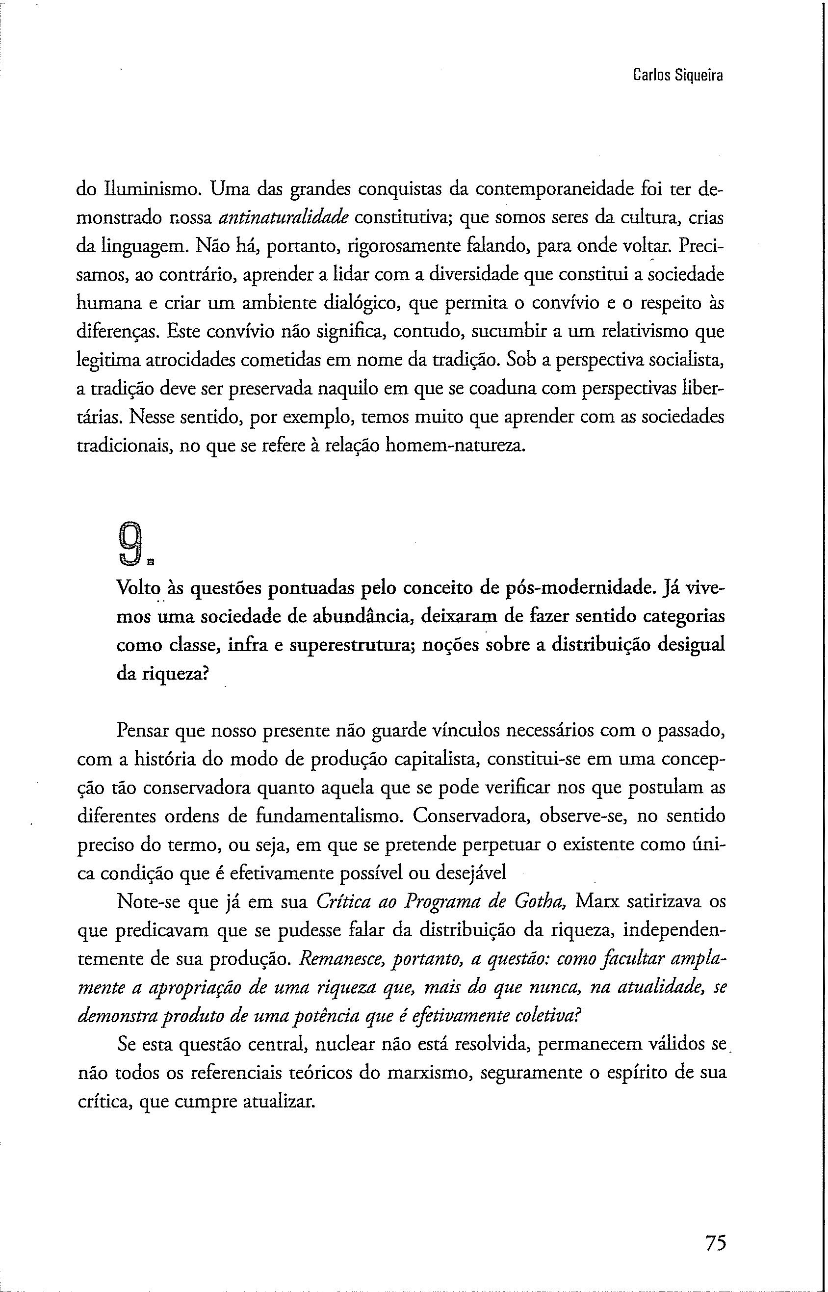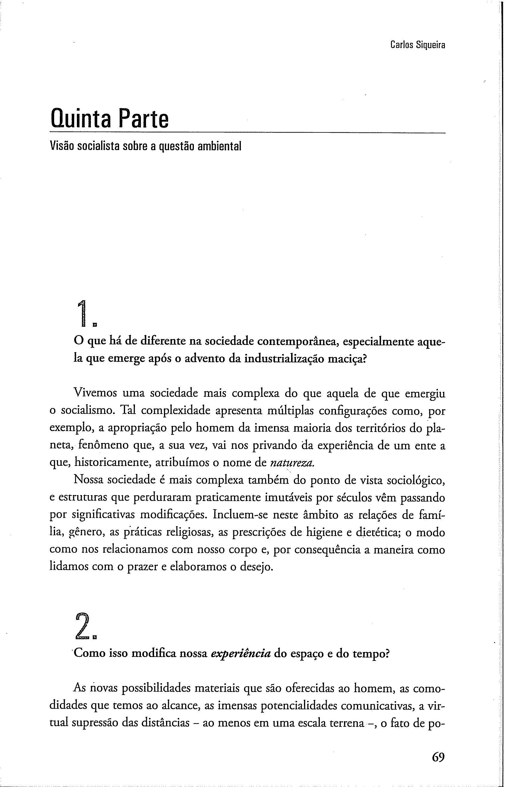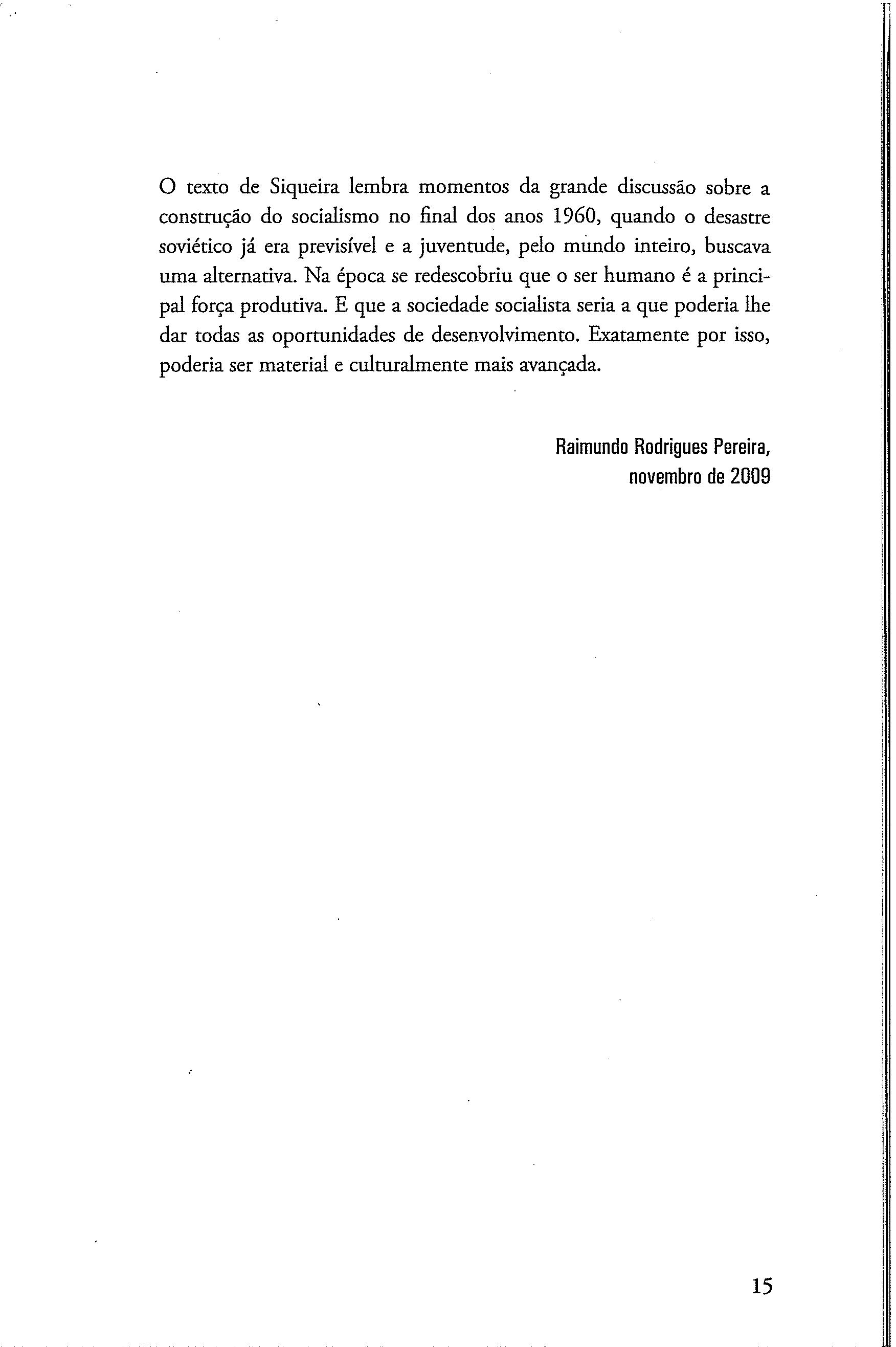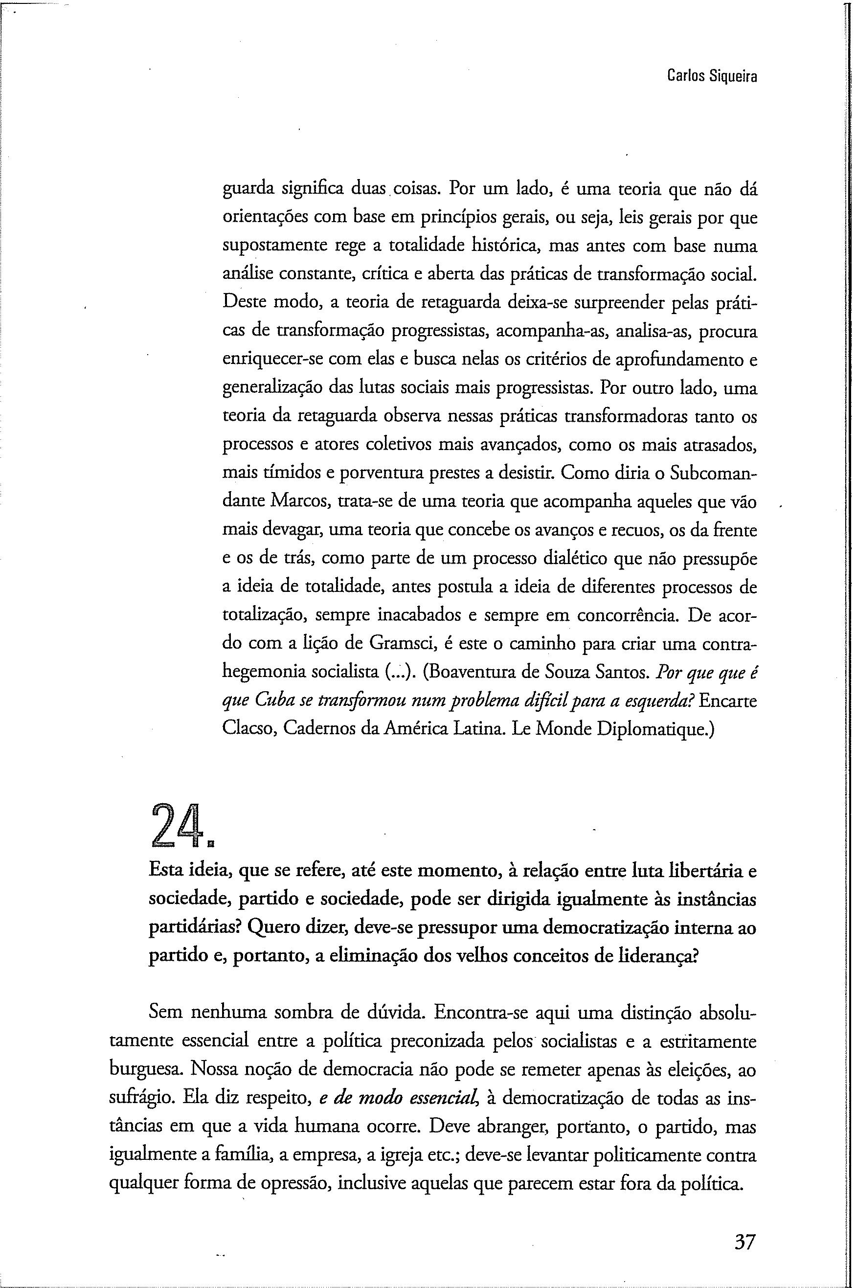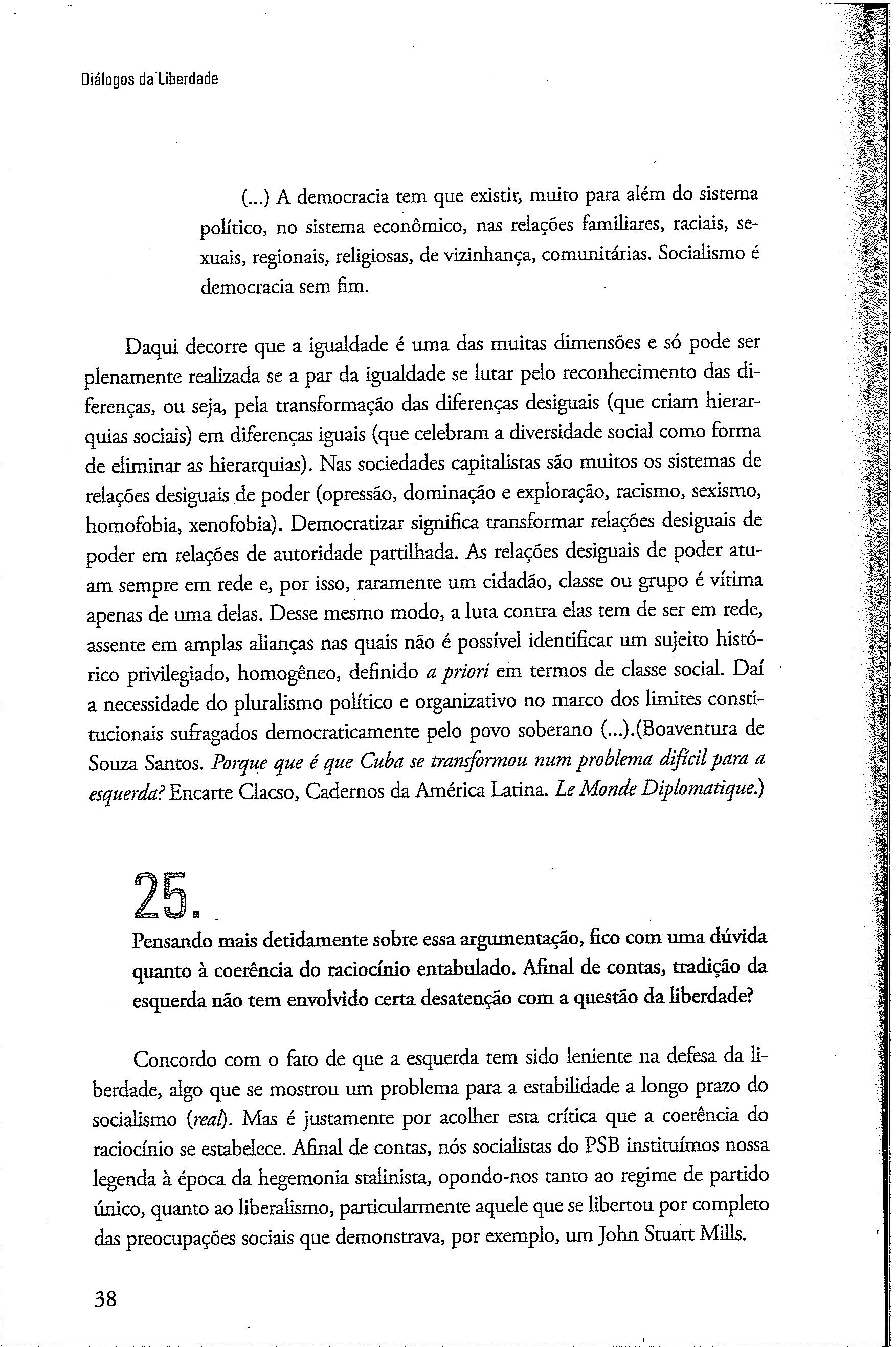 Publicação de 2009 que consiste em uma entrevista com Carlos Siqueira acerca de temas ligados ao socialismo, como: a diferença entre a concepção socialista e a liberal sobre a Liberdade; a necessidade de uma reforma política; características do neoliberalismo; qual o papel do PSB atualmente, entre outros.