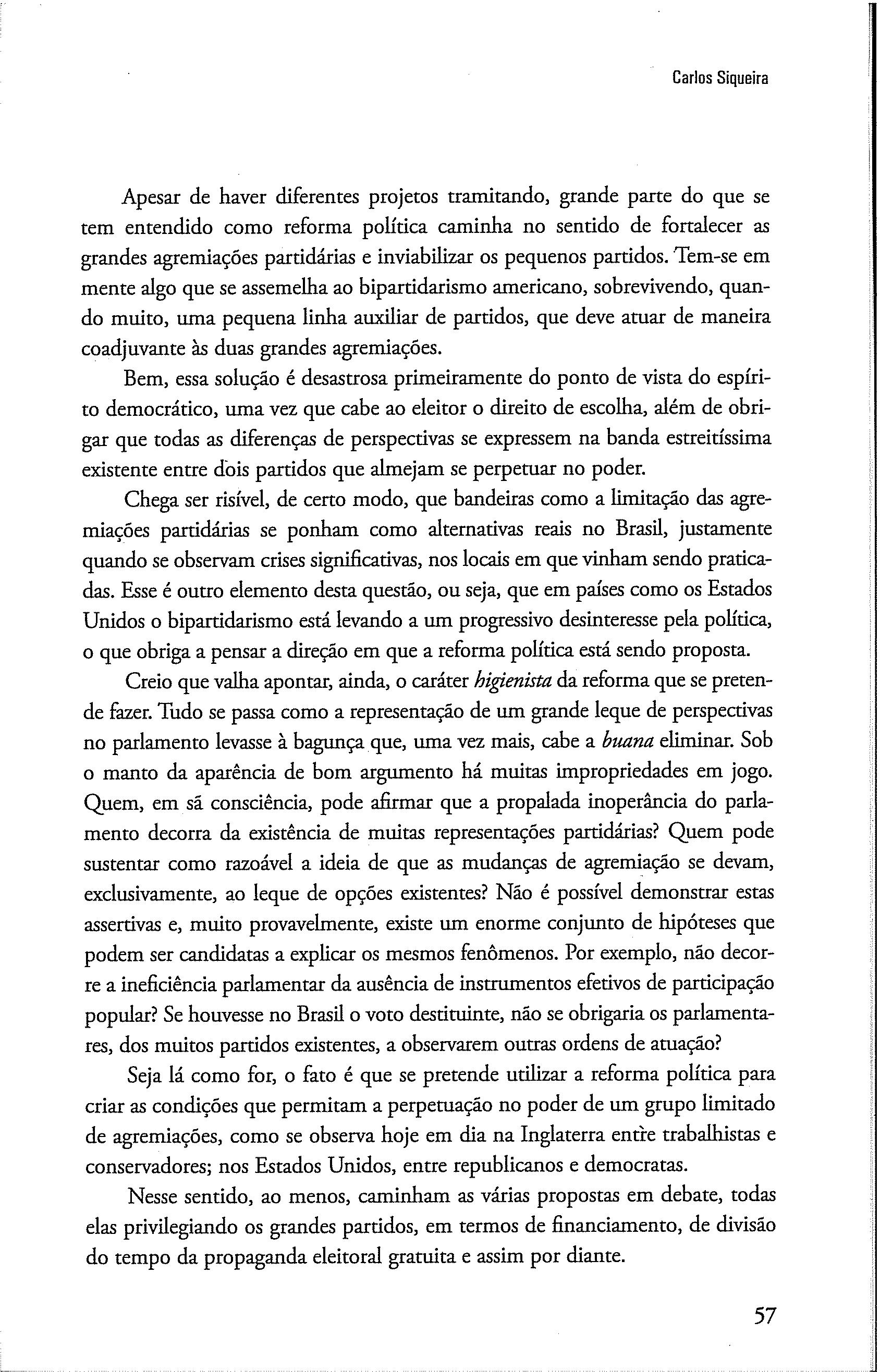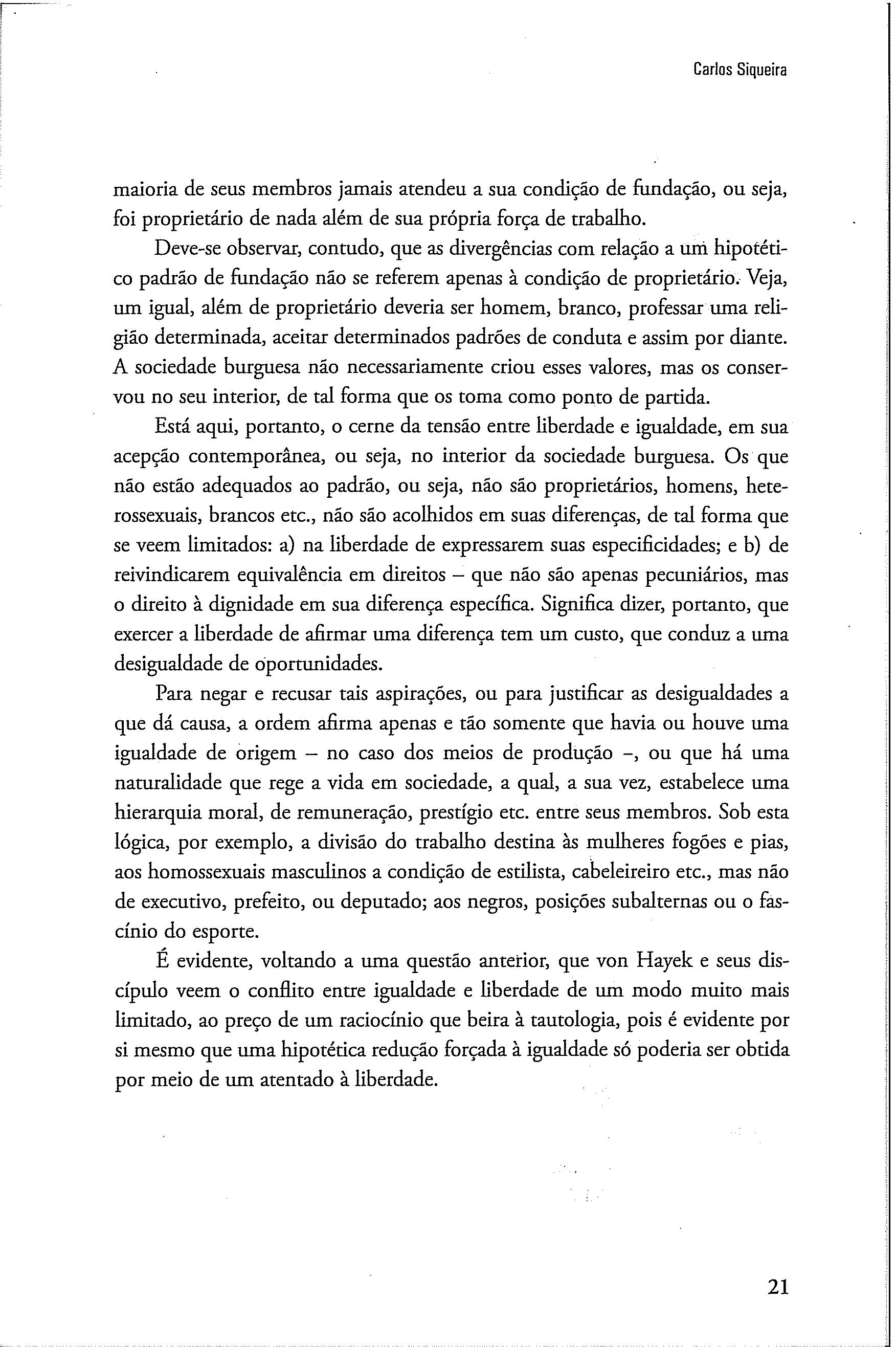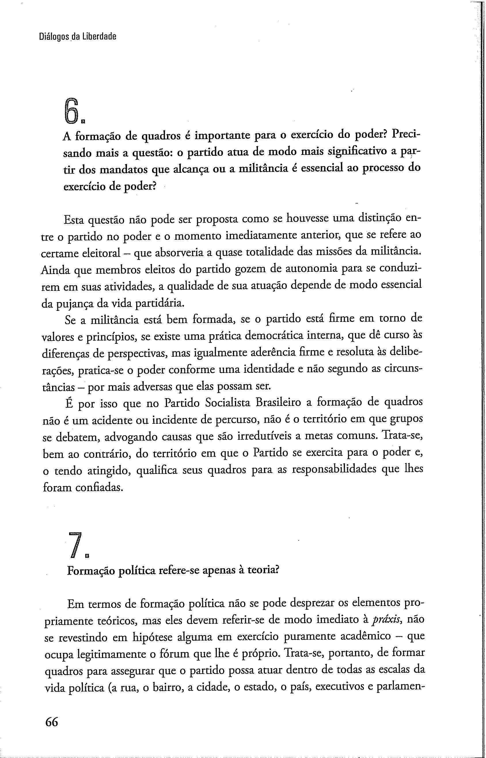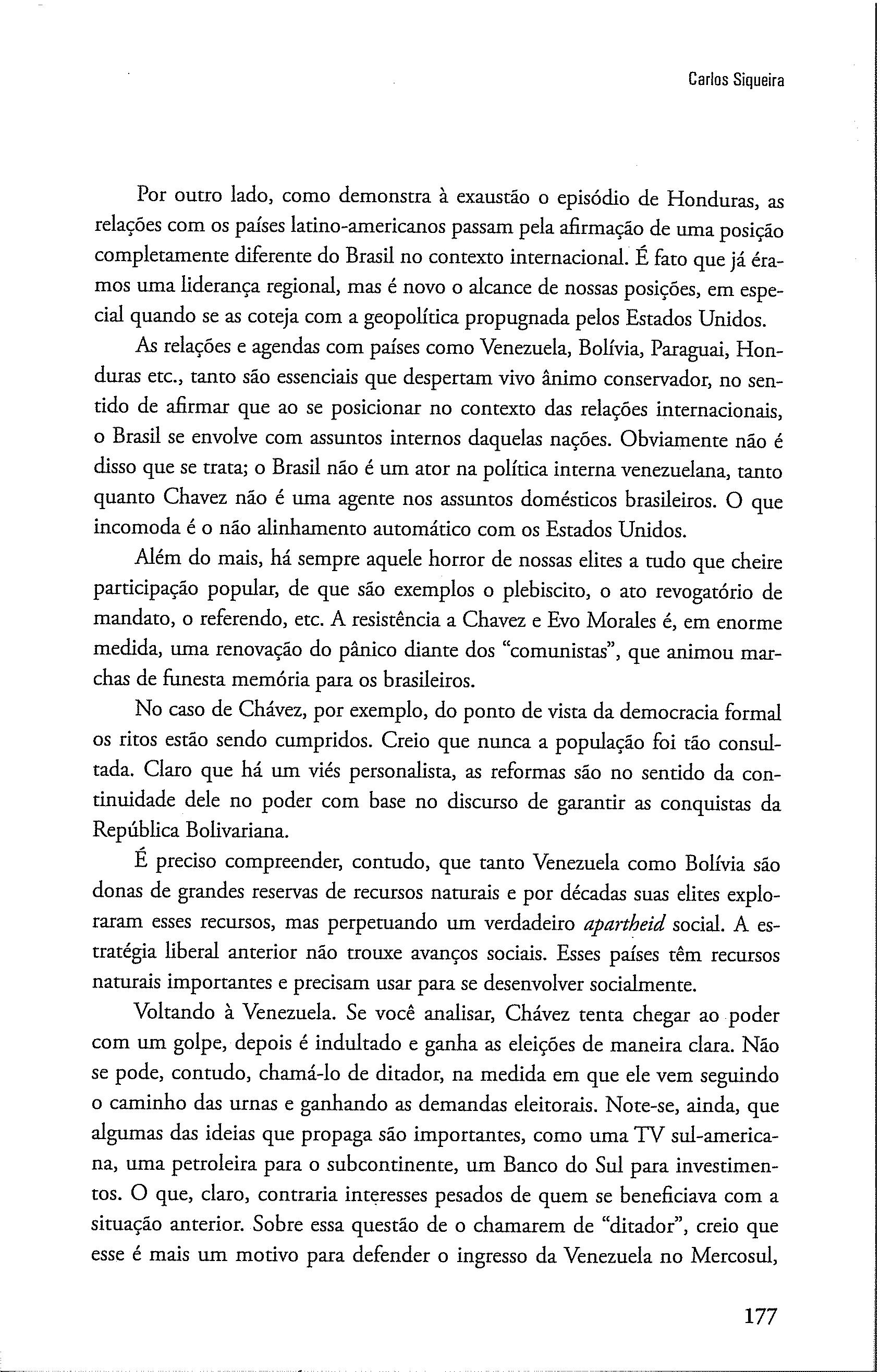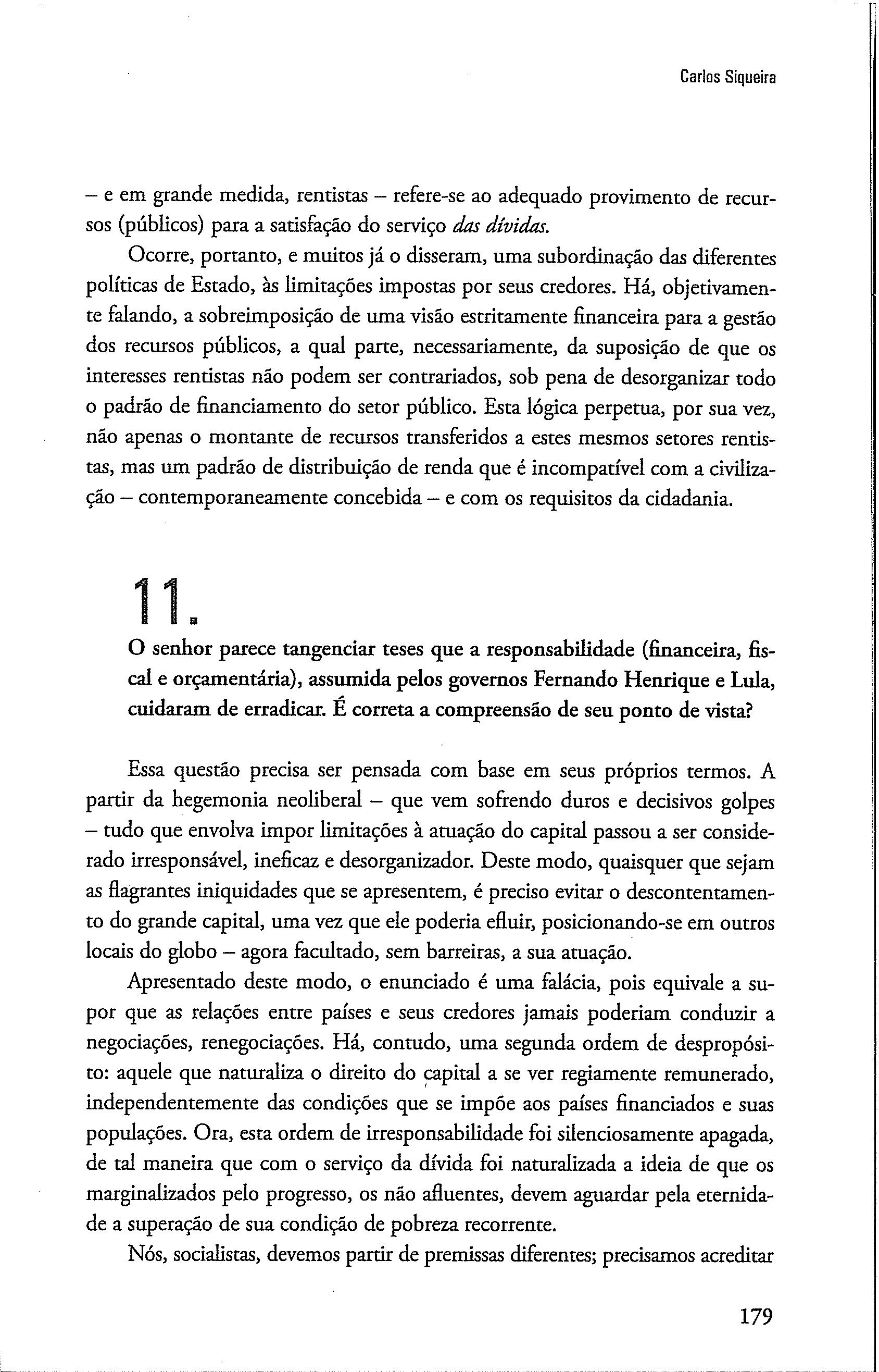 Publicação de 2009 que consiste em uma entrevista com Carlos Siqueira acerca de temas ligados ao socialismo, como: a diferença entre a concepção socialista e a liberal sobre a Liberdade; a necessidade de uma reforma política; características do neoliberalismo; qual o papel do PSB atualmente, entre outros.