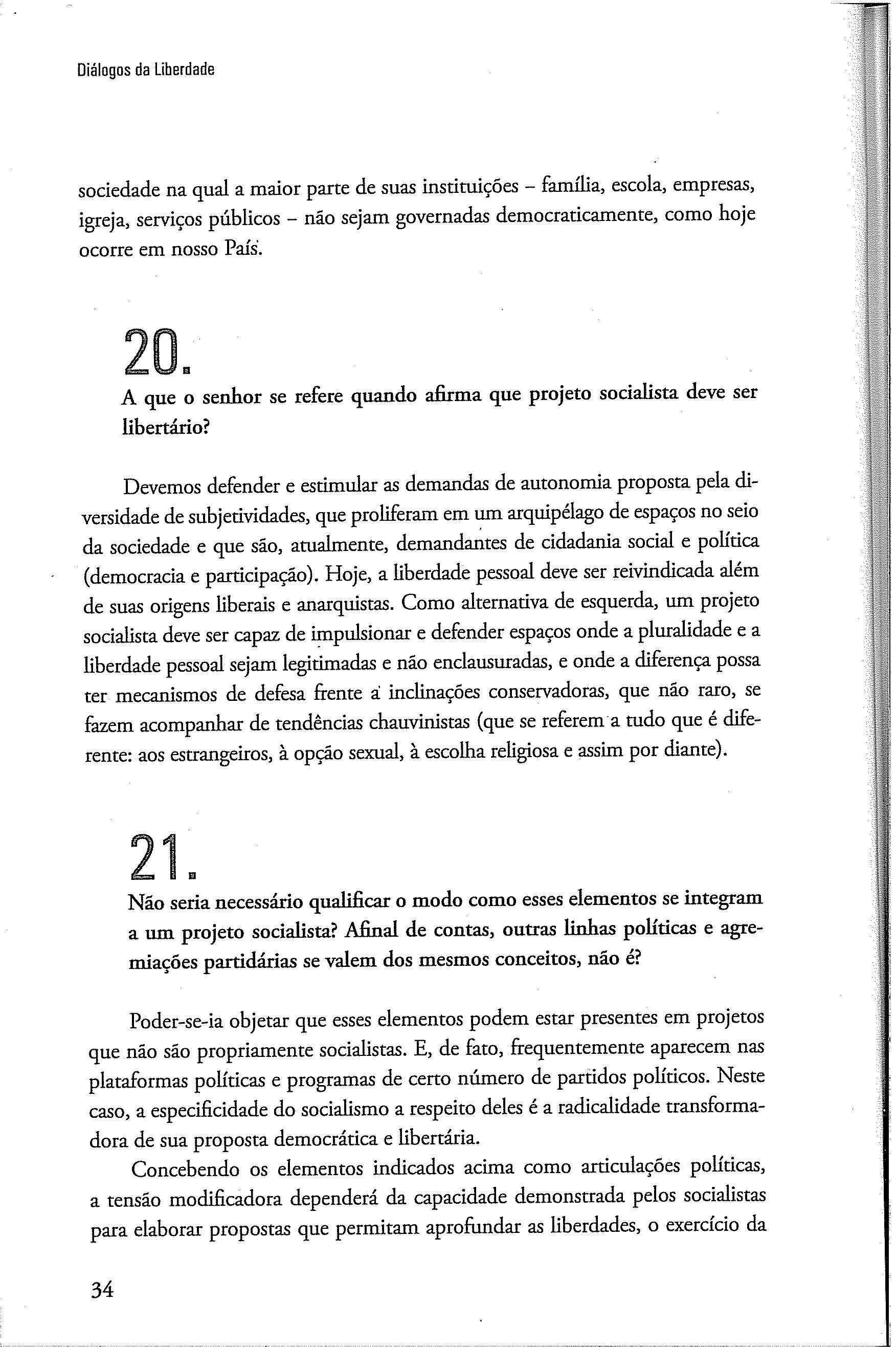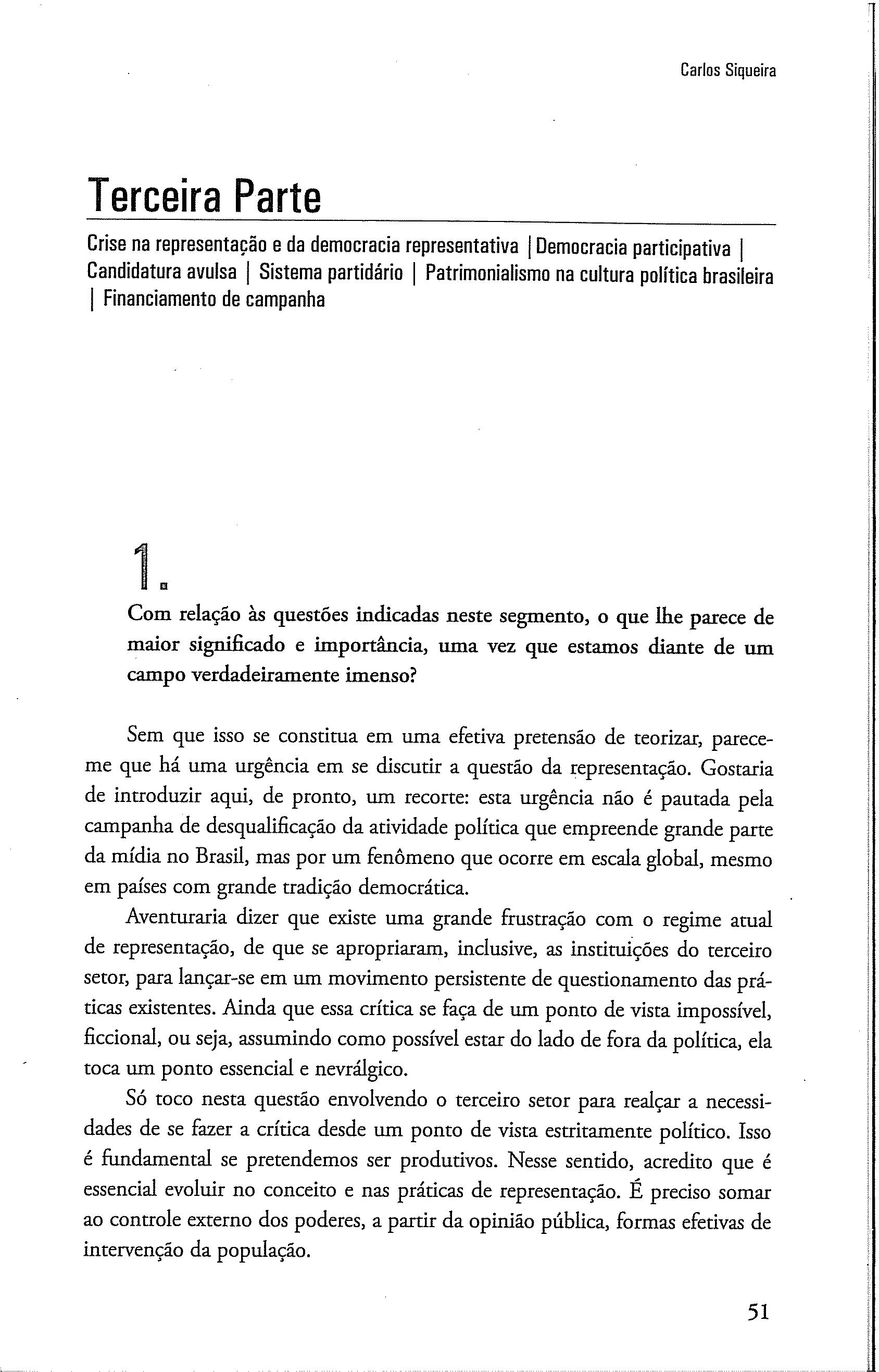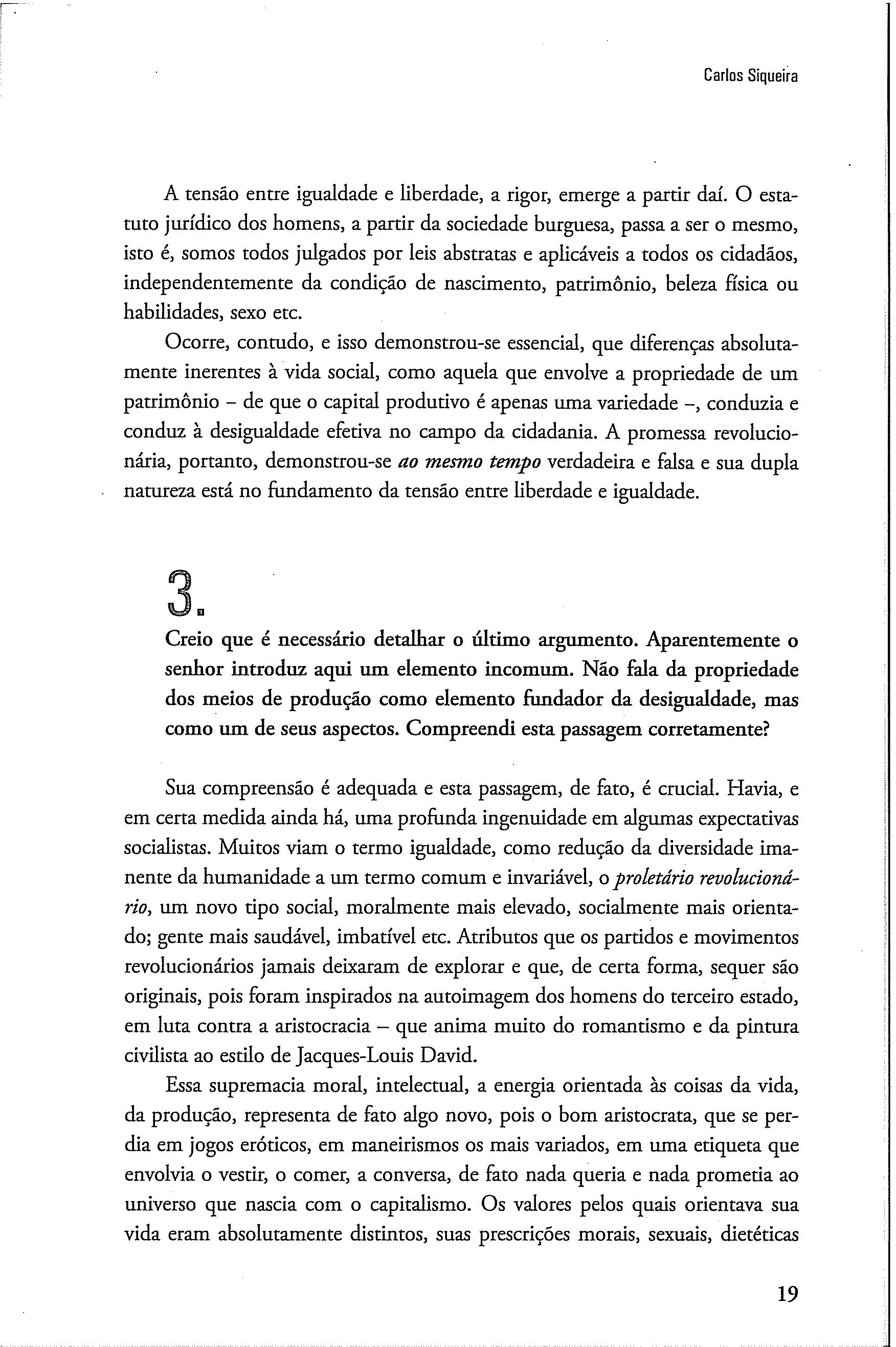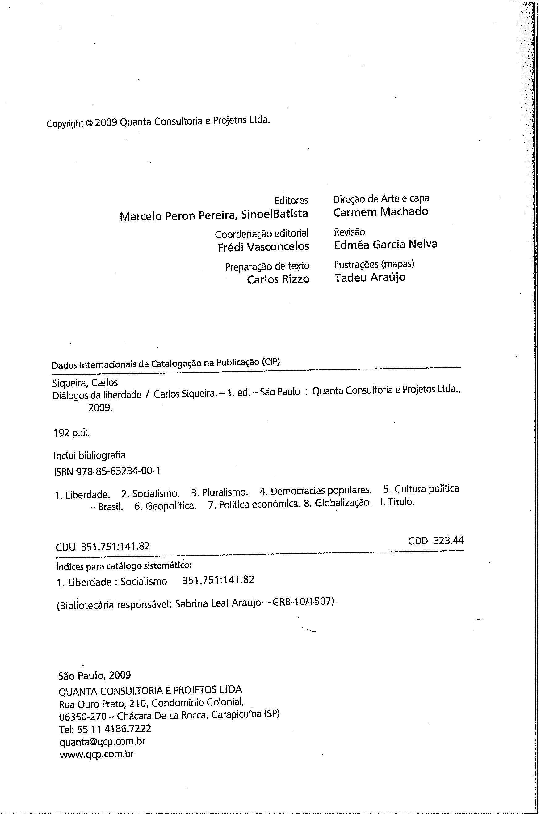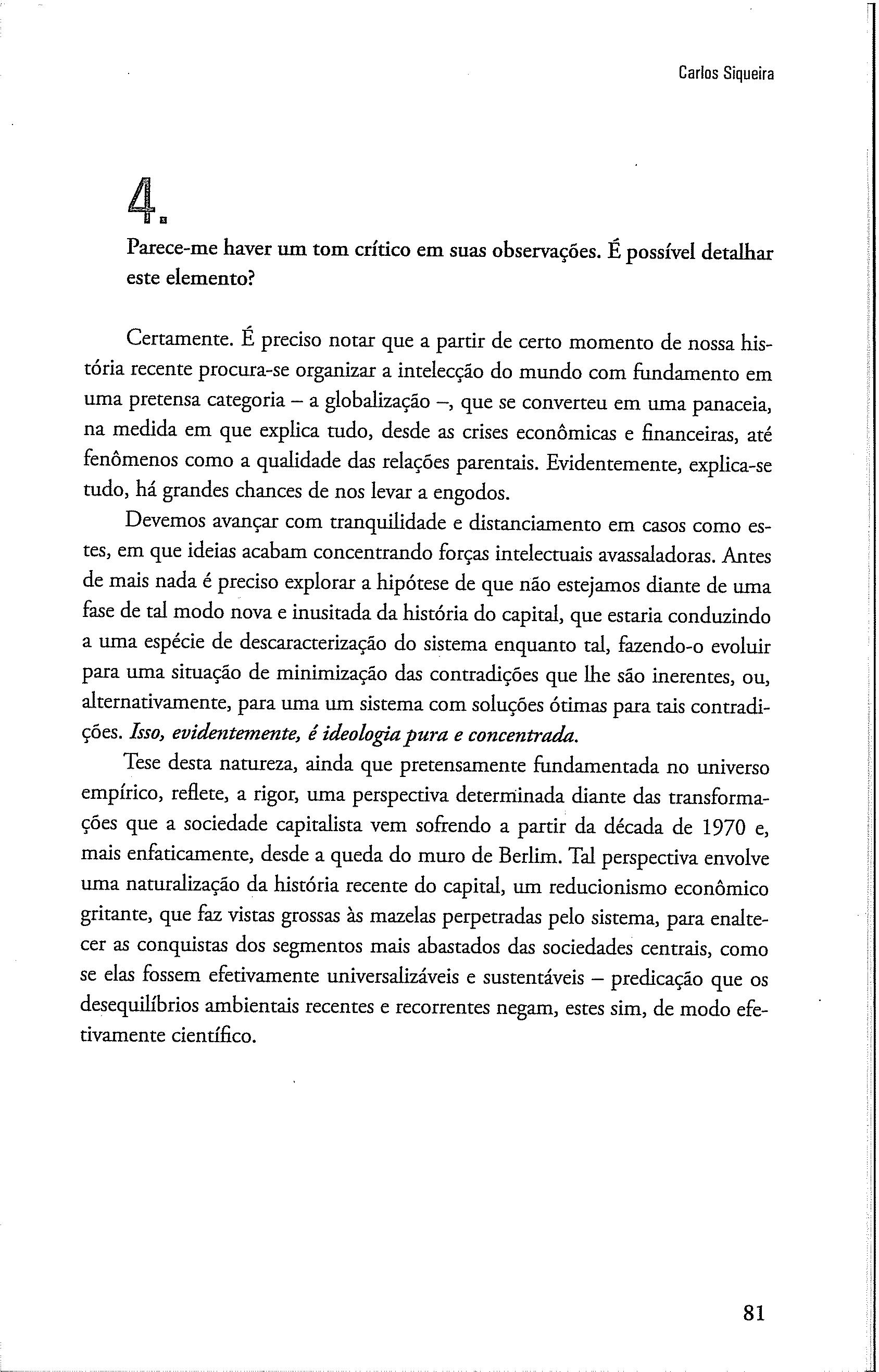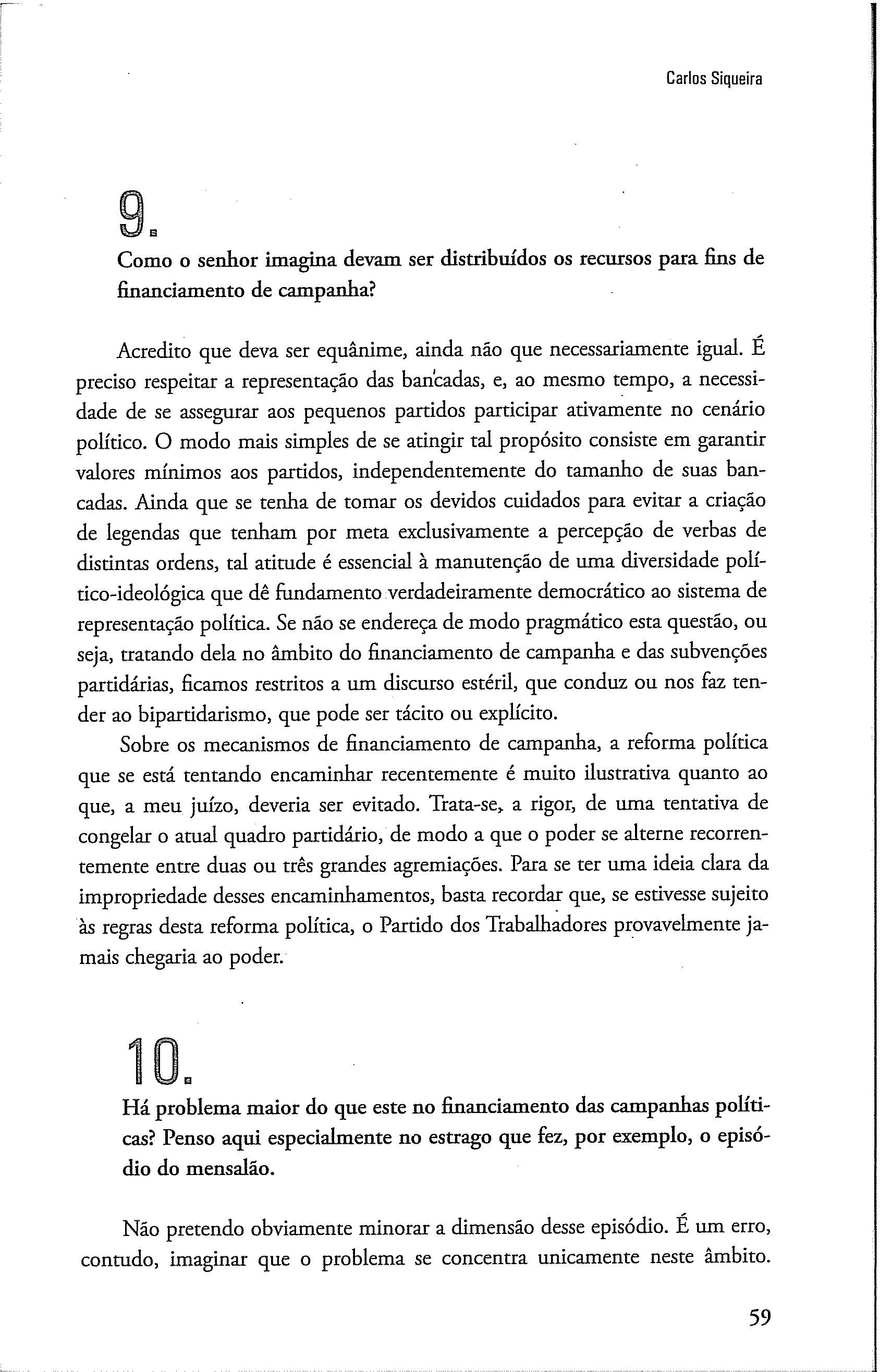 Publicação de 2009 que consiste em uma entrevista com Carlos Siqueira acerca de temas ligados ao socialismo, como: a diferença entre a concepção socialista e a liberal sobre a Liberdade; a necessidade de uma reforma política; características do neoliberalismo; qual o papel do PSB atualmente, entre outros.